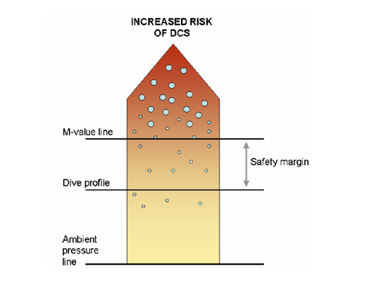 실제적인 적용과 안전 다이빙 습관무감압 모델은 다이버가 감압병에 걸리는 것을 분명하게 예방할 수 있다. M-값은 감압병 증세가 나타나지 않는 것과 감압병에 걸리는 것 사이에 확실한 경계선을 만들어주는 것은 아니다. 사실 현대의 감압 과학은 다이빙 후에 감압졍 증세가 없을 때라도 우리 조직 속에는 버블이 있을 수 있다는 것을 증명했다. 따라서 M-값은 기포가 없는 상황을 대변할 수도 없지만 조직 속에 있는 침묵의 기포들이 견딜 수 있을 만큼이라는 것은 말해줄 수는 있다.