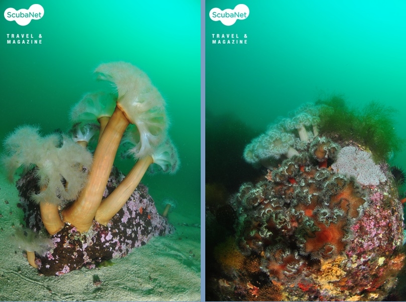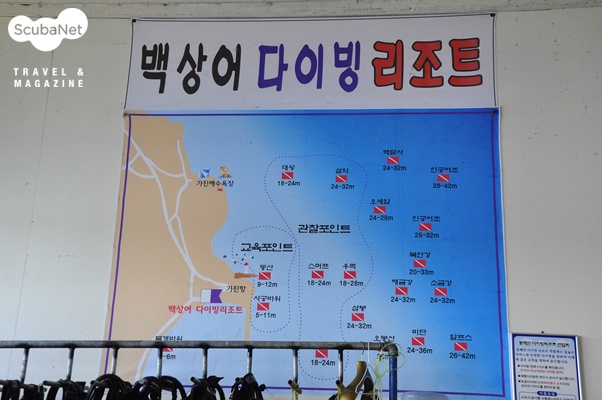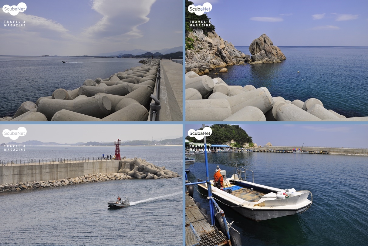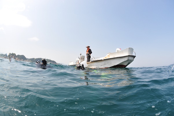 다이빙 포인트는 30m 내외의 웅장한 자연짬 지형이 많다. 교육생을 위한 10m 수심의 사공바위는 얕은 수심에 해외다이빙과 비슷한 느낌을 준다고 한다. 많은 어종과 7~8 종류의 새우를 볼 수 있고 계절에 따라 변화하는 자연환경을 감상하기 좋은 곳이다. 필자는 말미잘 포인트에서 다이빙을 했는데 25m 수심의 자연짬 포인트에 말미잘에 빼곡히 붙어 있는 모습이었다. 커다란 바위를 가득 메우고 있는 빨간색, 흰색, 오렌지색의 말미잘이 장관을 이루는 포인트였다. 7인승과 12인승 두 대의 보트로 다이빙을 진행하고 있다.