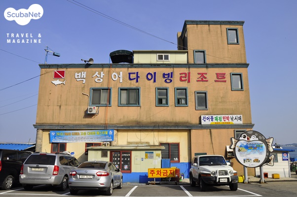 백상어 다이빙 리조트는 3층 건물에서 숙식과 다이빙을 모두 할 수 있는 일체형 리조트이다. 1층에는 다이빙 장비와 충전시설 등이 있고 다이버들이 쉬고 다이빙을 준비할 수 있는 공간이 있고 2층에는 숙소가 준비되어 있다. 3층은 식당인데 직접 재료를 가져와 식사를 준비해도 되고 리조트에서 제공하는 식사는 한 끼당 5천원에 이용할 수 있다.