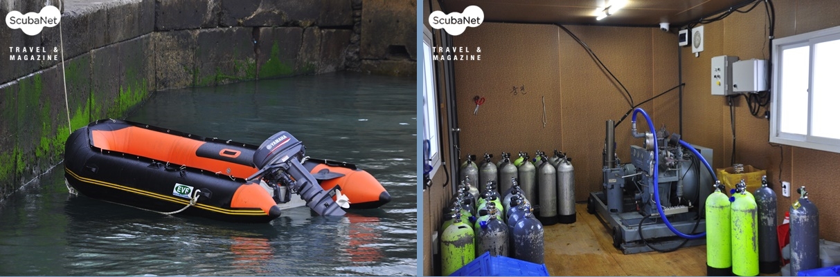 다이빙은 리조트 바로 앞인 수마포구에서 시작한다. 수마포구 왼편으로는 바로 성상일출봉이 보이고 오른쪽으로는 섭지코지, 아쿠아플라넷 제주 등 유명 관광지들이 있다. 현재 고모보트 1대로 다이빙을 진행하고 있으며 대부분의 포인트가 보트로 5~10분 거리에 있다. 자리여, 불상, 독립문 등의 포인트가 유명하며 포인트 개발은 계속 진행 중이다. 포구 앞에는 곧 비치 파라솔과 테이블을 놓을 계획이다. 다이빙 브리핑과 디브리핑을 파란 바다와 성산일출봉을 배경으로 상큼하게 진행하려는 것이다.