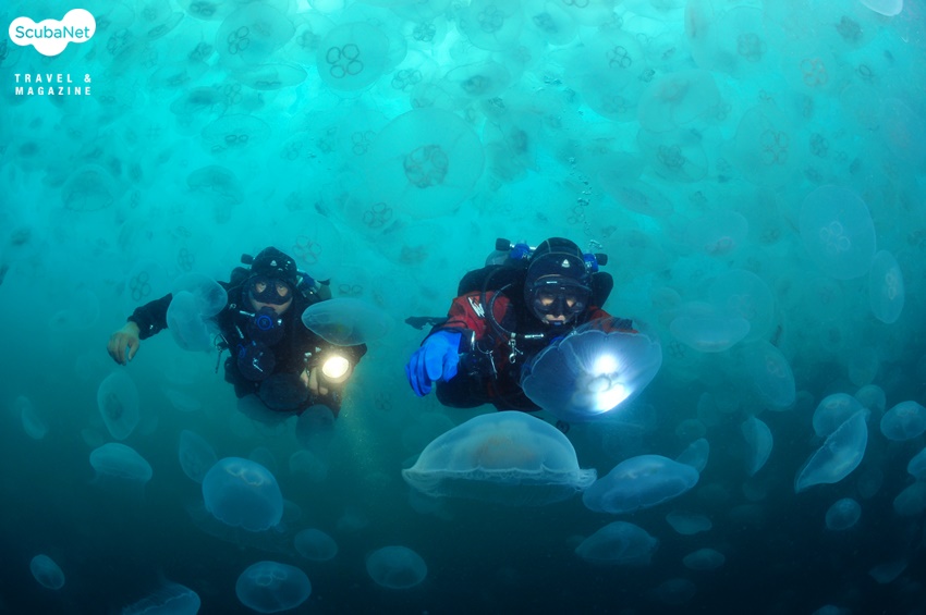보름달물해파리가 번성하여 바다를 뒤덮고 있는 신기한 현상도 만날 수 있다 사진/ 박 정권