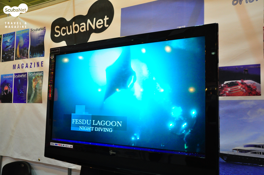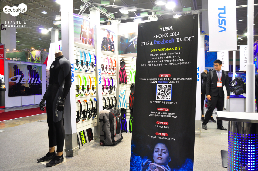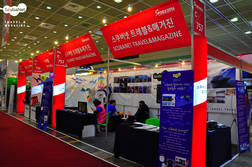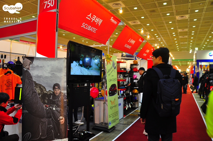 스쿠버넷 부스랑 등을 마주하고 있는 스쿠버텍 부스에요.