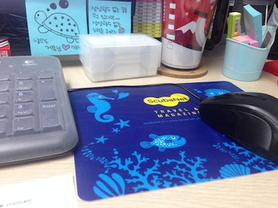 스쿠버넷 티셔츠와 선물로 드리고 있는 넘넘 이쁜 마우스 패드가 보이네요!!