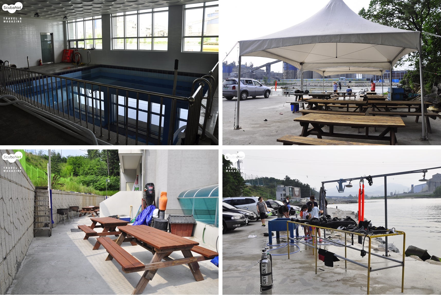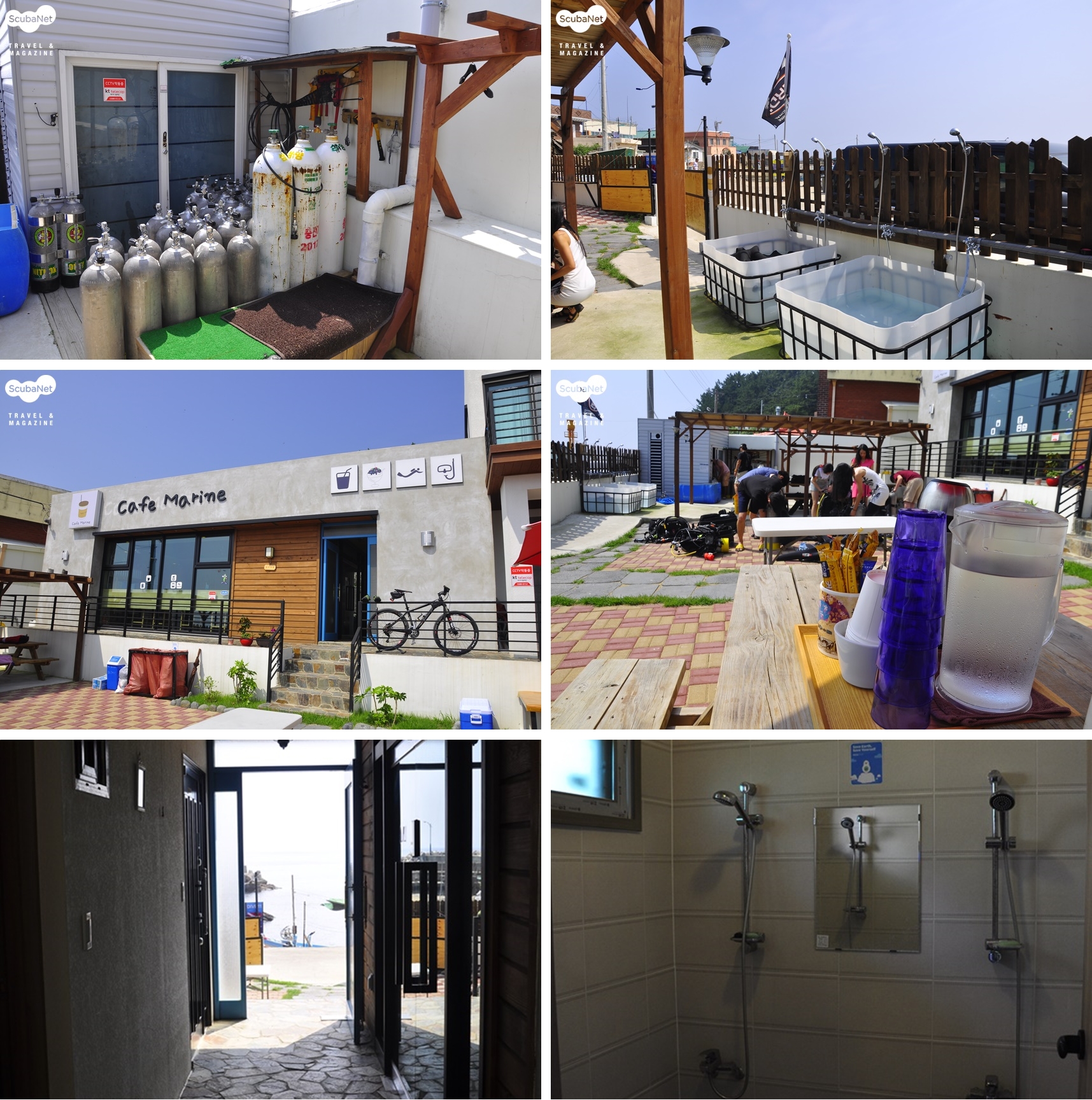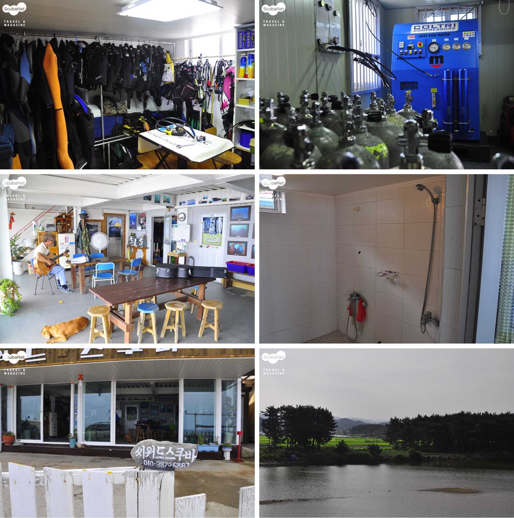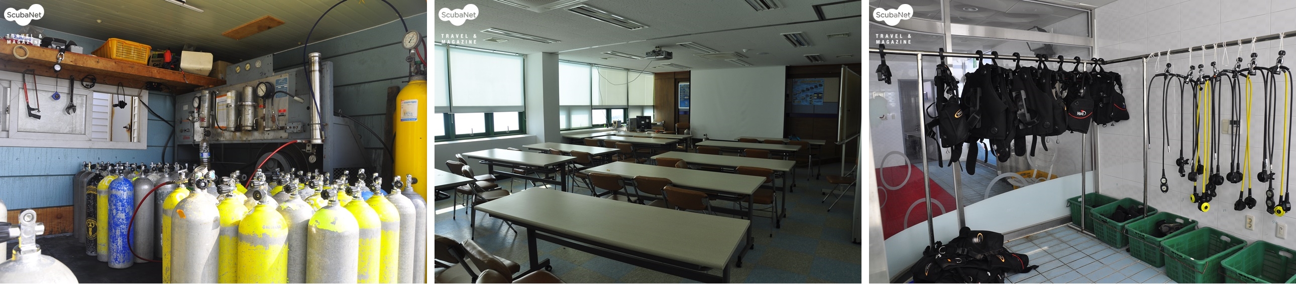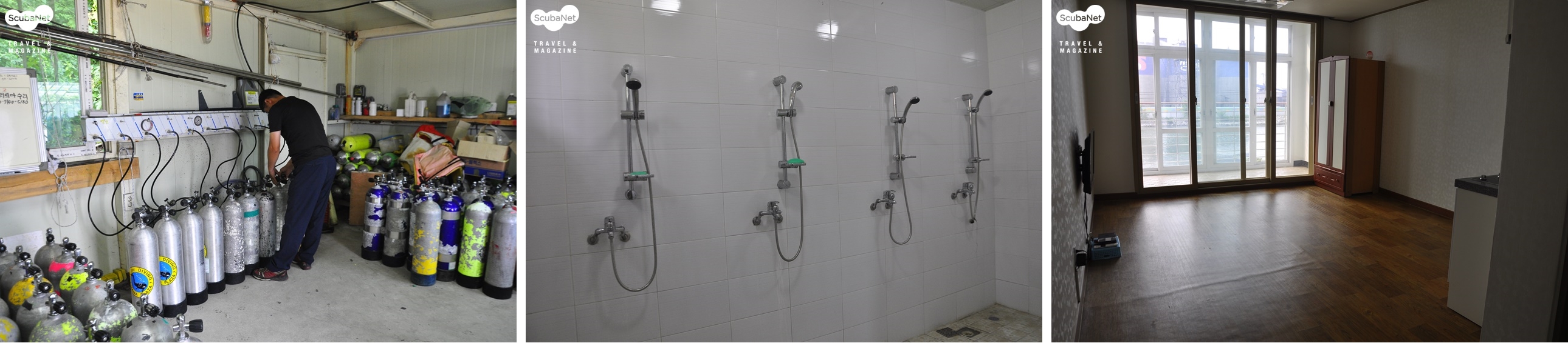총 7명의 직원이 김상규 사장과 함께 일하고 있는데 주중에는 수중작업을 위주로 하고 주말에는 리조트 스태프로 투입된다. 다이버들이 아무리 많이 찾아도 최대 7명의 스태프가 있기 때문에 어려움 없이 다이빙을 진행한다. 숙소는 10인실 규모의 큰 방이 2개, 5인실 규모의 작은 방이 4개로 총 40명의 인원을 수용할 수 있다. 동해해양레포츠센터 1층에는 수심 5미터의 잠수풀이 있어 제한 수역 교육에 효과적이다. 수영장, 숙소, 샤워실, 매점, 식당이 갖춰져 있다. 다이빙은 레포츠 센터에서 약 100m 떨어진 항에서 이뤄진다. 탱크 충전, 다이빙 준비와 장비 세척을 위한 공간은 항 앞에 마련되어 있다.