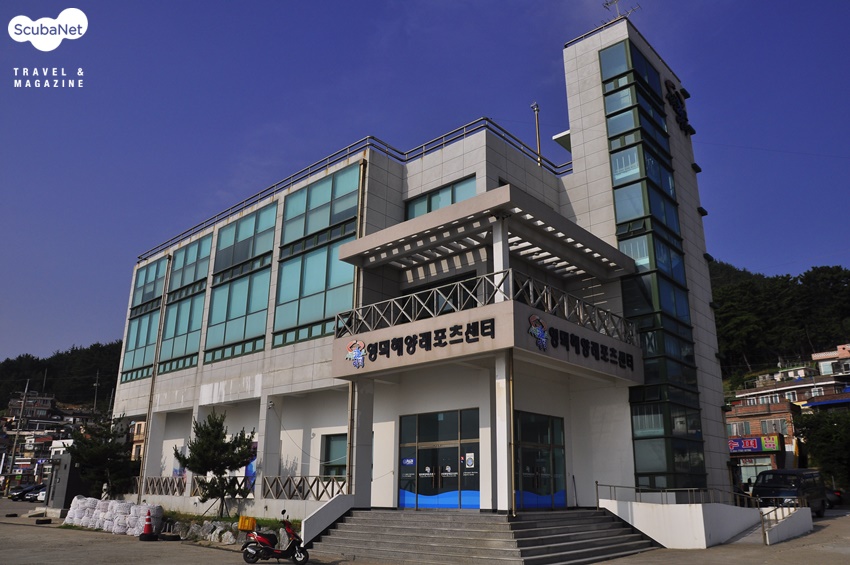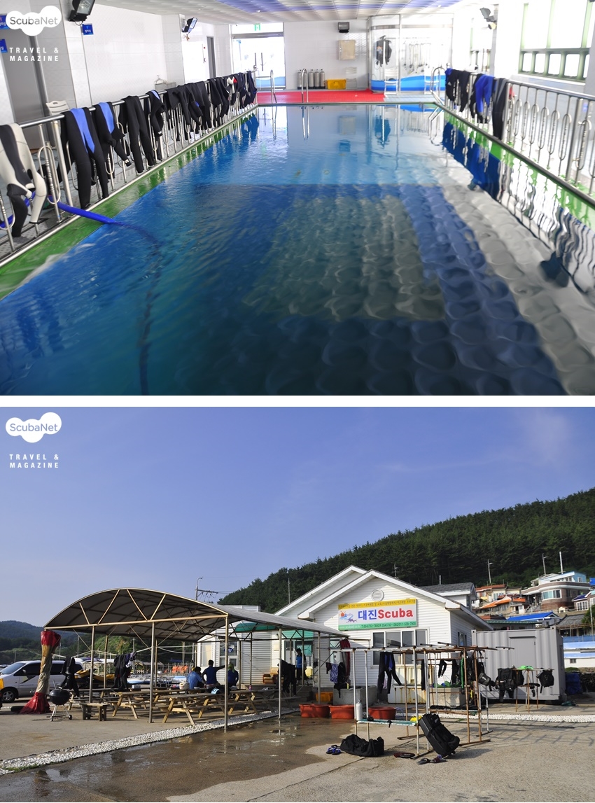 대구 출신의 최억 사장이 대진에 다이빙 리조트를 시작한 것은 무려 23년 전의 일이다. 삼십 대의 젊은 신혼 부부가 대진을 찾아 이제는 네 딸과 함께하는 대가족을 이루었고 소박하게 시작한 리조트는 영덕해양레포츠센터와 함께 넓은 부지에 펼쳐져 있다. 8년 전 바다를 매립하여 만든 넓은 매립지의 가운데에 단층의 리조트 건물이 있고 왼편으로 해양레포츠센터가 자리잡고 있다. 해양레포츠센터는 지난 2008년 영덕군에서 약 16억원의 예산을 들여 지상 3층, 연건평 240평 규모로 지은 건물이다. 6m 수심의 다이빙풀장과 강사 대기실, 관리사무실, 대강의실, 소강의실, 샤워장, 장비보관실 등과 3개의 숙소가 있다. 리조트 앞으로는 바로 비치 다이빙을 할 수 있는 바다를 향한 계단이 있고 오른편으로 30m 가량을 걸으면 보트 다이빙을 위한 공간이다. 리조트 건물 앞이 다이버들이 쉴 수 있는 휴식공간이고 건물 안에는 화장실, 샤워실, 충전실 등이 갖춰져 있다.