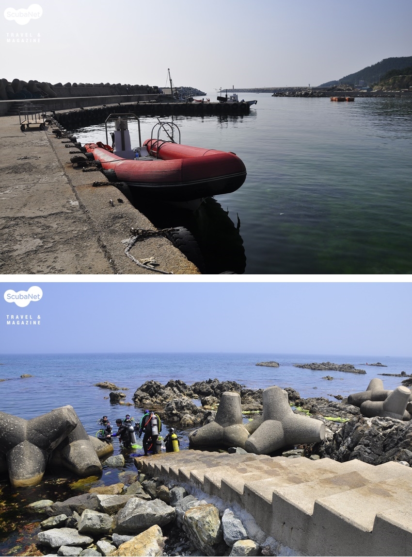 다이브11의 김동훈 트레이너는 포항의 블루오션 리조트를 약 8년 정도 운영해오다가 1년 전 다이브11을 새로 시작했다. 그 간의 불편했던 점을 해소할 수 있는 자리를 찾은 것이었는데 무엇보다 다이버들이 배를 편리하게 이용할 수 있는 곳에 우선순위를 뒀다. 지금의 다이브11은 리조트 바로 앞의 항에서 쉽고 편하게 배를 탈 수 있다. 항을 이용하는 다른 배들이 몇 척 되지 않아 조용하고 안전하다. 내항에서는 비치다이빙이 가능한데 5m 수심의 얕은 바다는 해조류가 무성하고 그 안을 누비는 치어들이 가득하다.