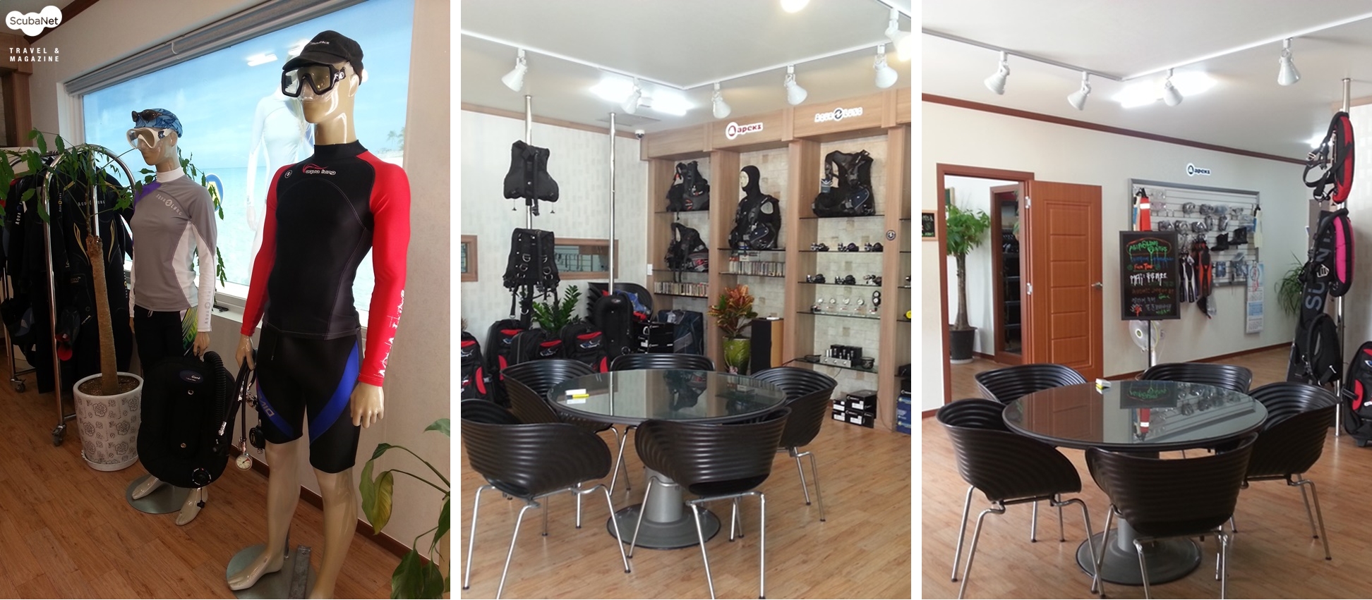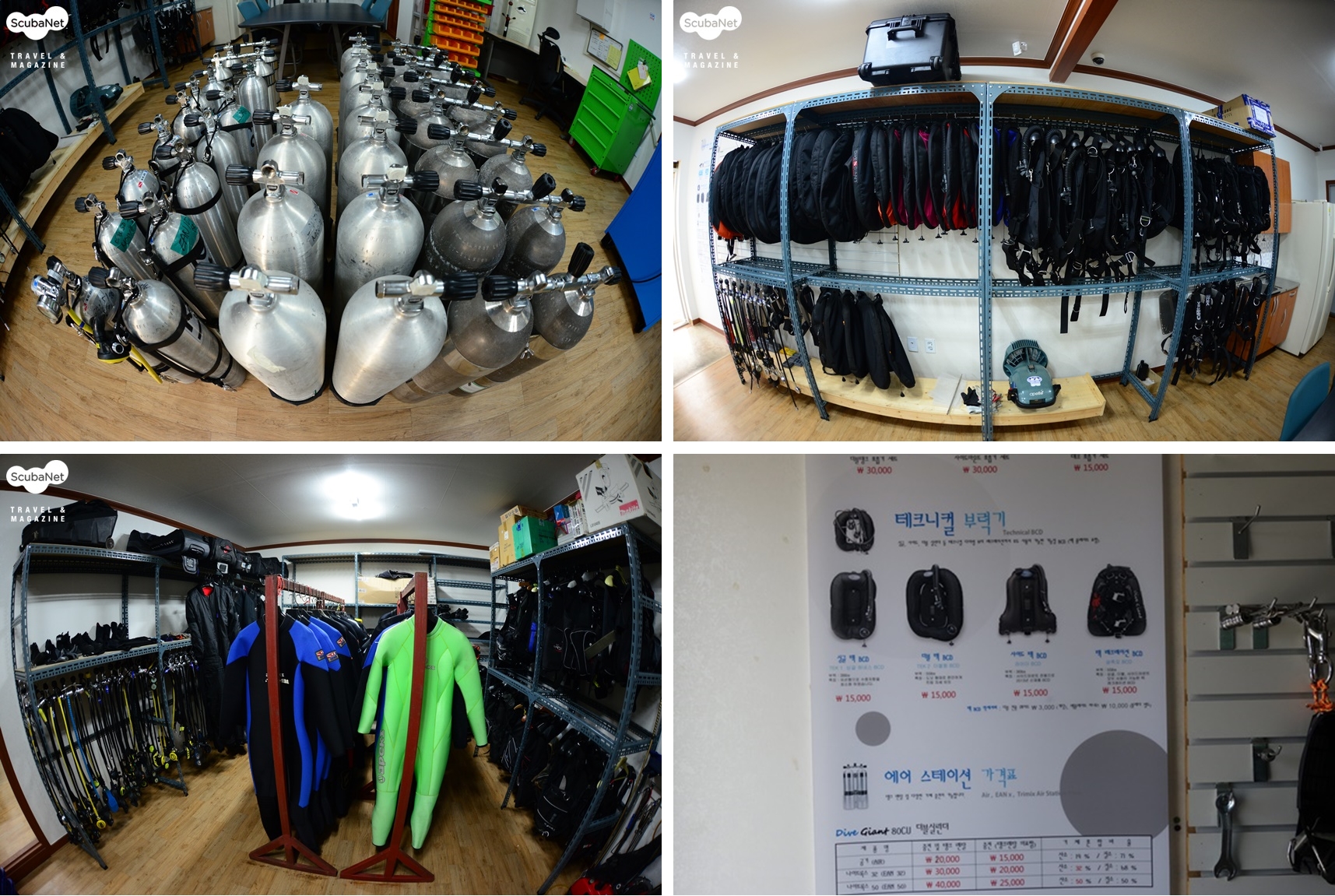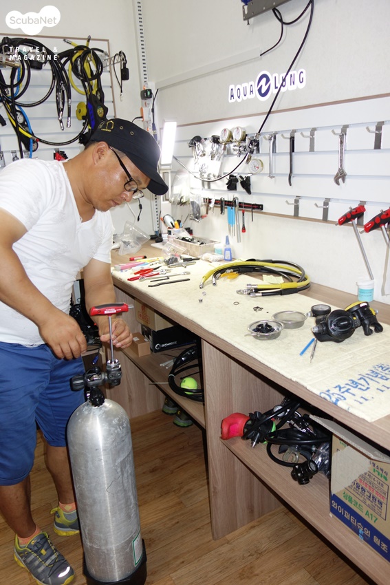 각종 장비 A/S호흡기, BC, 드라이슈트 등 각종 다이빙 장비의 수리 및 수선이 가능하다. 다이빙 투어를 진행하기 전에 미리 장비를 보내면 수리해서 다이빙이 가능한 상태로 준비해 둔다. 지나가면서 직접 수령할 수도 있고, 현지 리조트로 미리 배송하여 다이빙을 진행하는데 불편이 없게 해준다. 다이빙 중에 문제가 있는 장비를 리조트에 맡겨 놓거나, 지나가는 길에 맡겨두면 수리 후 택배로 배송해준다. 서울에 가서 다시 장비를 맡겼다는 받는 것보다 훨씬 편리하고, 신속하다.