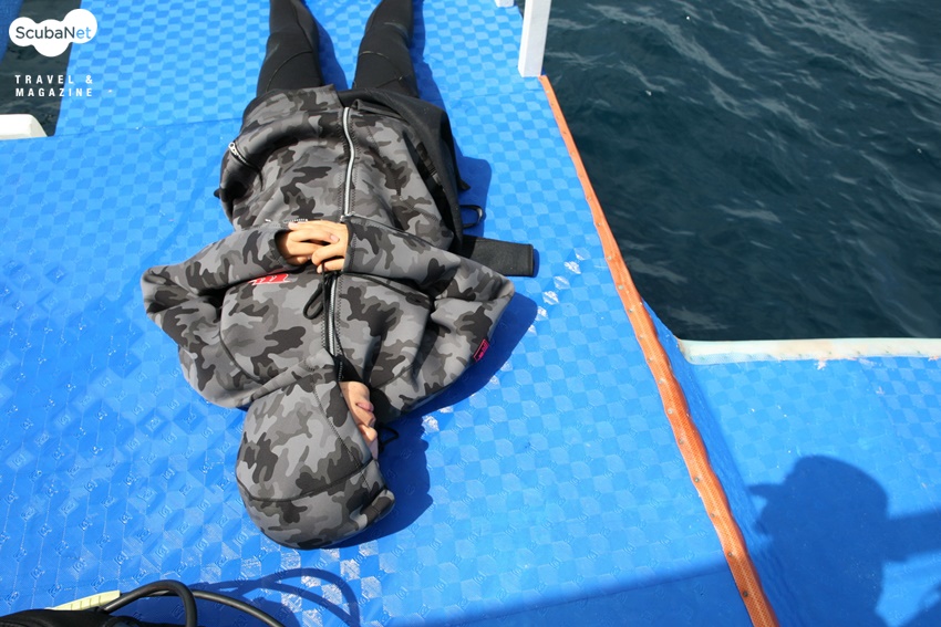 열대바다에서도 후드를 착용해주는 것이 좋다