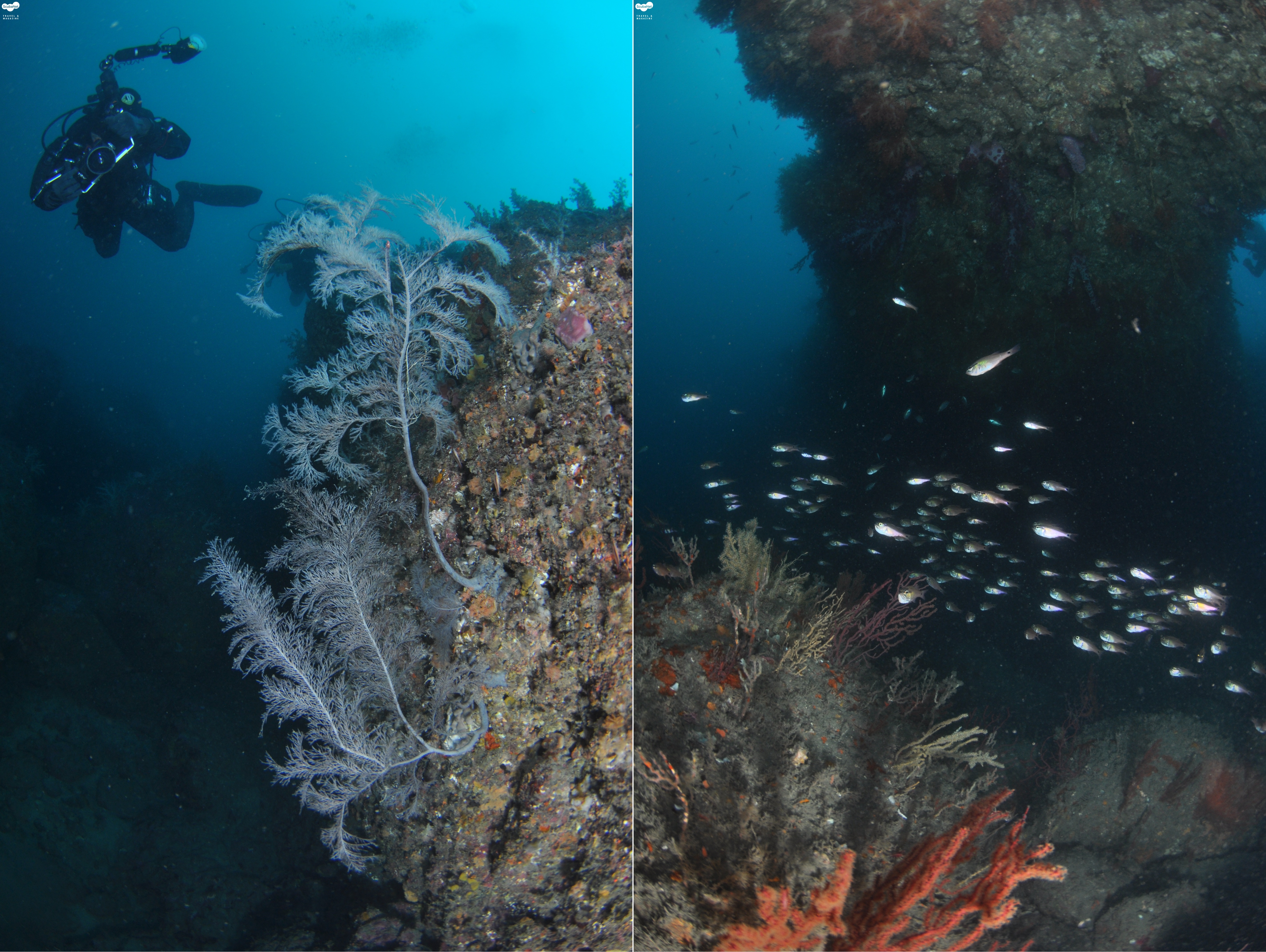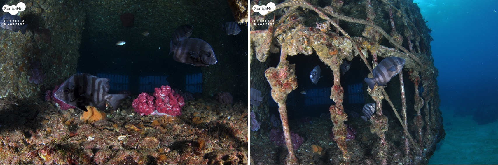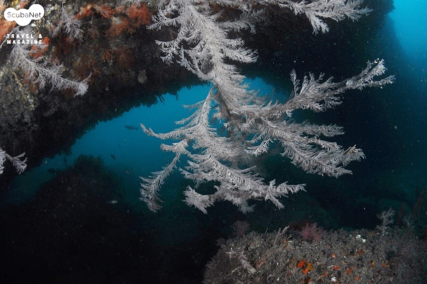 아치 상단에는 큰수지맨드라미, 분홍바다맨드라미, 해송들이 자라고 아치 안으로는 바늘산호류가 자라고 있다. 또 아치 안팎으로 줄도화돔 무리가 천천히 움직이며 자리를 지키고 있다.