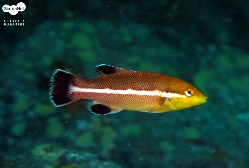 호박돔 호박돔은 농어목 놀래기과에 속하는 종으로 학명은 Choerodon azurio 입니다. 같은 속으로 전 세계에 25종 정도가 있으며, 둥근 머리가 특징인 비교적 체구가 큰 놀래기 무리입니다. 서태평양 고유종으로 주로 동아시아의 연안에서 볼 수 있습니다. 우리나라에서는 남해안과 제주도 연안에서 쉽게 볼 수 있습니다. 이빨이 크고 잘 발달되어 있는 데서 유래한 영어이름은 ‘tuskfish’이고, 일본에서는 이라(イラ)라고 부릅니다. 체장이 45 cm에 달하며, 상업적으로 어획하지는 않습니다. 그러나 일본에서는 살이 부드러워 된장을 넣어 졸이거나 냄비요리로 잘 먹습니다. 몸 전체가 분홍색이고, 배 가운데에서 가슴지느러미가 난 곳에 걸쳐 비스듬하게 검은 색 띠가 있습니다. 가슴지느러미 뒤쪽은 색이 엷습니다. 이 종은 다른 놀래기과의 어류와 마찬가지로 몸 크기가 작을 때는 암컷으로 있다가 커지면 수컷으로 성전환 하는 자성선숙형의 자웅동체어입니다. 그래서 바다 속에서 암컷과 수컷은 눈으로 보아 구분이 가능하지요. 수컷이 암컷보다 더 크며, 머리 앞부분의 살이 팽창하여 사각형에 가깝게 보입니다. 수컷은 검은 색 띠가 몸의 측면에 넓게 나있고 가슴지느러미가 빨간색을 띠고 있으나, 암컷은 가슴지느러미가 노란색