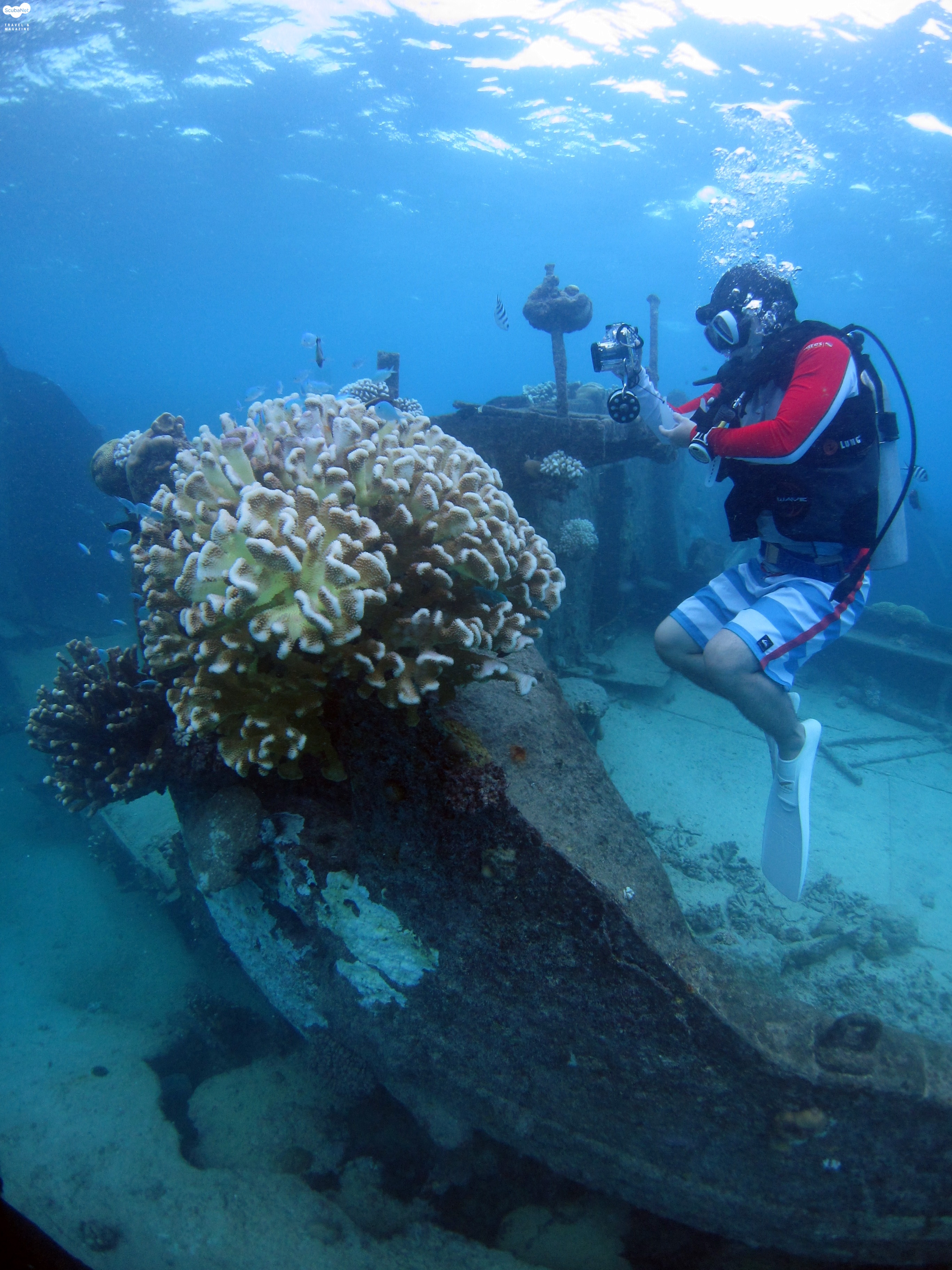 (4) Ship Wreck B29 Submarin Tank 난파선, 폭격기, 잠수함, 탱크...보트다이빙으로 인리프 쪽 포인트에는 2차세계대전 당시의 폭격기, 난파선, 탱크 등이 물속에 고스란히 남아있습니다. 또한 관광용 잠수함이 지나가는 모습을 다이빙 시에도 관찰 할 수 있는 색다른 경험도 할 수 있습니다. B-29 포인트의 폭격기와 Shipwreck 포인트의 난파선은 비교적 얕은 수심의 빛이 잘 들어오는 환경이라 사진을 찍기에도 매우 좋은 포인트입니다. ^^ 탱크포인트는 현지가이드가 개발한 포인트였는데 수심 35m 근방에 커다란 장갑차, 탱크를 만날 수 있습니다.