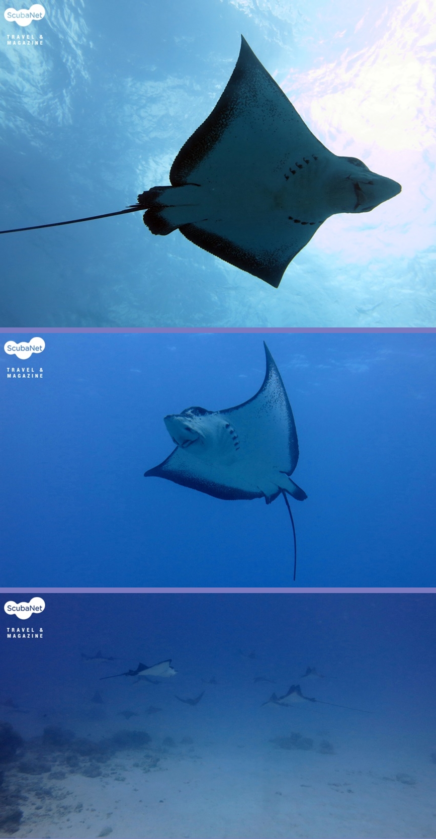 (2) 랜딩크래프트에서의 이글레이 무리모두 24마리였습니다. 정말 장관이었습니다. 몰디브 1주일 투어 당시에도 먼발치에서 7-8마리 본 것을 불과 10m도 되지 않는 거리에서 멋지게 헤엄치는 이글레이 무리를 본 것은 큰 행운이었습니다. 한쪽으로만 헤엄치다 24마리가 제 각각의 방향으로 흩어졌다가 모이기도 하면서 그중 몇 마리는 제 머리 바로 위 1m도 되지 않는 거리에서 헤엄치기도 했습니다. 보통 남쪽 보트다이빙 포인트인 딤플, 아이스크림에서도 자주 볼 수 있다고 하니 사이판 다이빙을 계획 중이시라면 기대하셔도 좋을 것 같습니다
