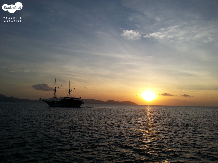 07:20 숍에 집합하면 07:40 경에 항구서 배가 출항한다. 약 2시간에서 3시간 가량 걸리는 코모도 다이빙 포인트까지의 느린 항해가 좋다. 통상 2회의 다이빙을 실시하며 가끔 코모도 파크의 관광도 실시한다. 점심은 배에서 직접 만들어 2회 다이빙 후 제공된다. 의외로 맛은 좋은 편이다.
