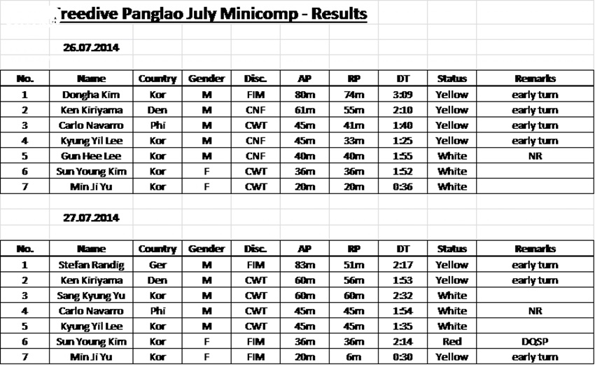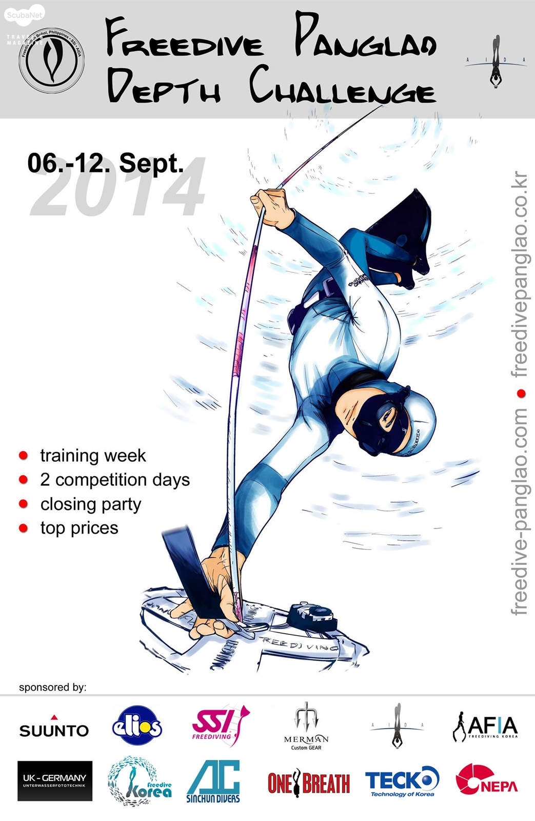2014년 7월에 한국과 가까운 필리핀에서도 드디어 프리다이빙 수심대회가 열렸습니다.사실, 이제까지 거의 모든 수심대회는 중미나 유럽, 또는 이집트까지 가야 했습니다. 프리다이빙 팡글라오의 동하 강사와 스테판은 아시아인들(특히 한국인과 중국인)도 보다 쉽게 대회를 참가 할 수 있는 계기를 만들고 싶어 했어요. 앞으로는 이곳 보홀에서 최소 1년에 한두 번씩, 정기적인 수심대회를 개최할 계획을 가지고 있습니다.