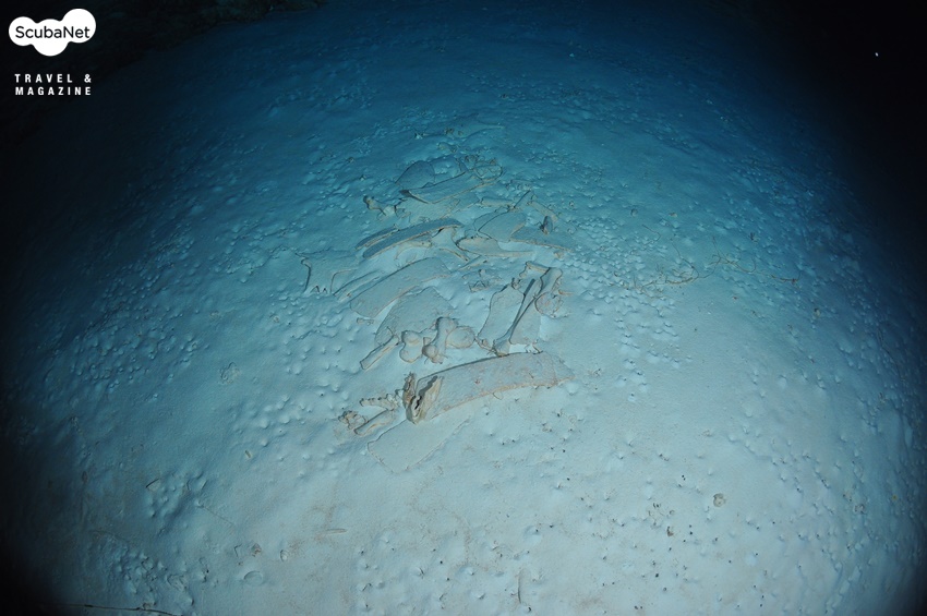 바닥은 미백색의 머드(진흙) 산맥으로 이루어져 있으며, 간혹 동굴의 바닥 부분에 작은 구멍들이 보이긴 하지만 다른 곳과 연결이 되어있지는 않았다. 동굴 진행 방향은 남서쪽이며 좌우 동굴 벽에는 부유물들이 마치 눈처럼 쌓여있고, 바닥 중간 지점에는 마치 사막의 모래 산을 연상케 하는 언덕들이 나오며, 이곳을 지나면 마치 계곡의 형태로 이어지는 곳들도 있어 멋진 수중 동굴 사진을 만들 수 있을 것 같기도 하다. 또한 이곳에는 오래 전에 사망한 것으로 추정되는 두 마리의 바다거북 뼈가 있는데 하나는 잘 보존이 되어 있지만 나머지 하나는 형체를 알아 보기 힘들 정도로 몇 조각의 뼈들만 남아 있다.