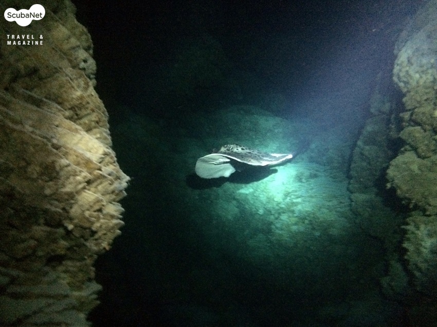 필자가 탐사 하던 중에서 한번은 출구를 찾지 못한 대형 마블레이 한 마리가 어둠 속에서 헤매는 것을 발견한 적이 있다. 출구를 찾지 못해 어둠 속에서 유영 하다 보니 동굴의 벽에 부딪히기를 몇 번 하다가 끝내는 바닥에 누워버리고 말았다. 이것을 보며 어두움에서 길을 잃고 생을 마감한다는 끔찍한 생각을 하니 등골이 오싹해지지 않을 수 없었다.