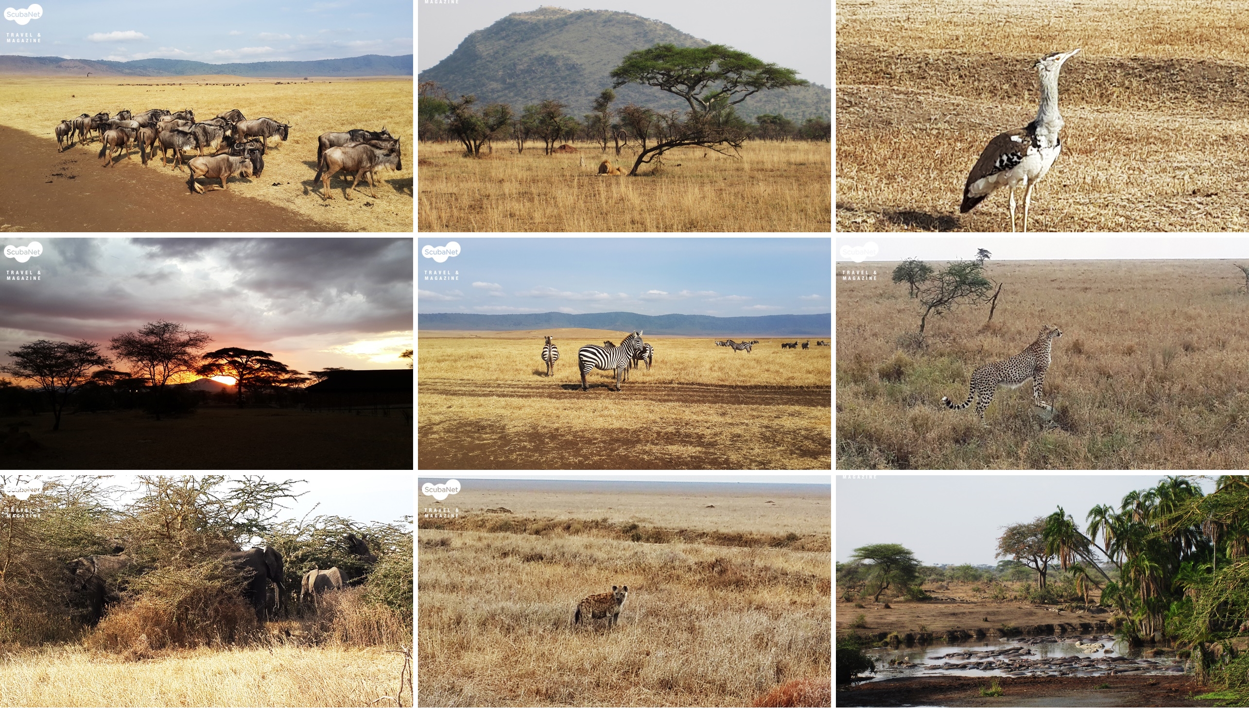 우리에게는 “세렝게티”로 더 잘 알려진 곳으로 사파리는 아프리카 여행의 하이라이트라고 할 수 있다. 2박 3일 동안 국립공원의 비포장 도로를 달려 야생동물들을 찾아 다니는 것이 여간 힘든 것이 아니었지만 눈앞에서 다큐멘터리가 펼쳐지는 순간 요동치는 차 안에서의 고생 따윈 잊혀져 버렸다. 사자, 치타, 버팔로, 코끼리, 하마 등 야생동물들을 감상하는 기분은 흡사 다이빙 중 대물들을 만나는 희열과 비슷했다.8월은 겨울철이라 채식동물들이 북부 마사이마라(케냐) 쪽으로 이동 하는 시기임에도 초원에는 아직 많은 동물들이 남아있어서 왜 세렝게티가 야생동물의 천국이라 불리는지 이해가 갔다.