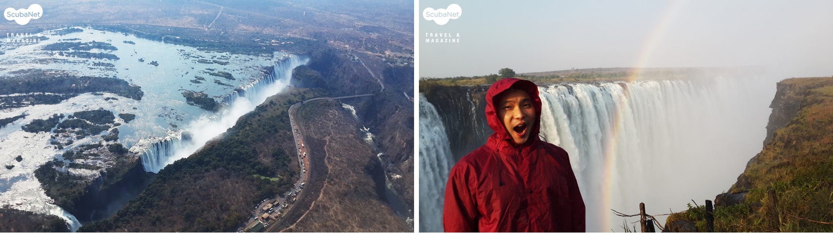 빅토리아 폭포가장 먼저 도착한 곳은 세계 3대 폭포의 하나인 빅토리아 폭포였다. 3대 폭포 중 낙차가 가장 높은, 108 m에 달하는 폭포로 그 장엄한 경관은 24시간 동안 비행기를 타고 온 피로를 시원하게 날려주었다.