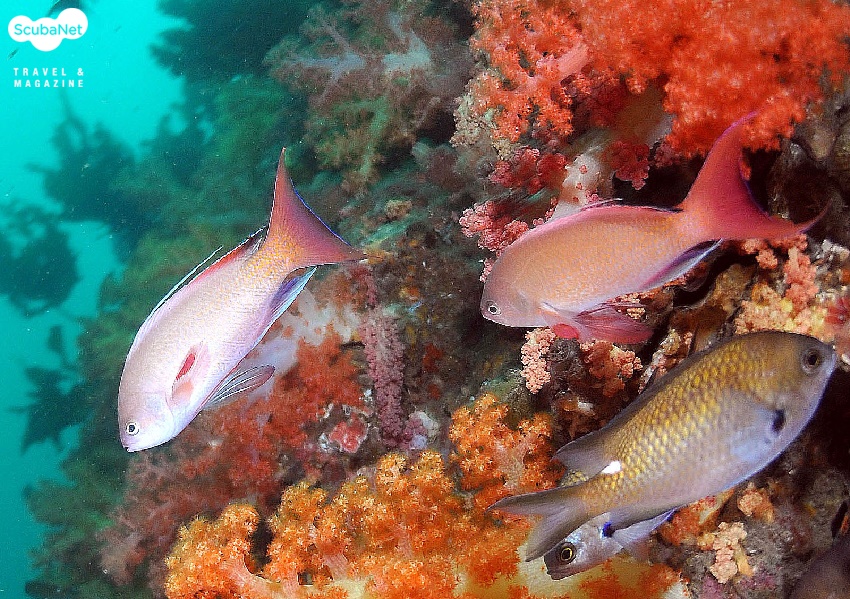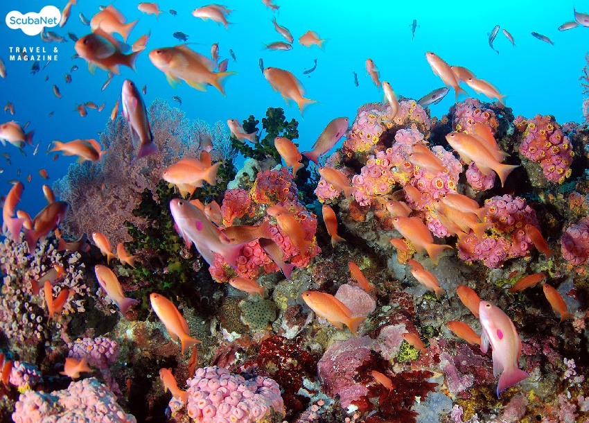 열일곱 번째 사랑구경의 대상은 농어목(Perciformes) 바리과(Serranidae)에 속하는 물고기입니다. 바리과의 물고기는 우리나라에도 여러 종이 있는데, 그 중 가장 자주 볼 수 있는 것이 금강바리(Pseudanthias squamipinnis)입니다. 영어권에서는 일반명으로 basslet fish 또는 fairy basslet fish라 합니다. bass는 농어를 뜻하고 어미인 -let는 작다는 뜻이며, fairy는 ‘요정같은’ 의미입니다. 따라서 ‘요정같이 아름다운 작은 농어’라는 뜻이지요. 일본에서는 ‘하나다이’(ハナダイ)라 하는데, 하나(ハナ)는 꽃이란 뜻이고, 다이(ダイ)는 돔을 지칭하는 말입니다. 역시 ‘꽃같이 예쁜 돔’ 이란 의미이지요. 이름이 의미하는 것처럼 작고 예쁜 물고기입니다.