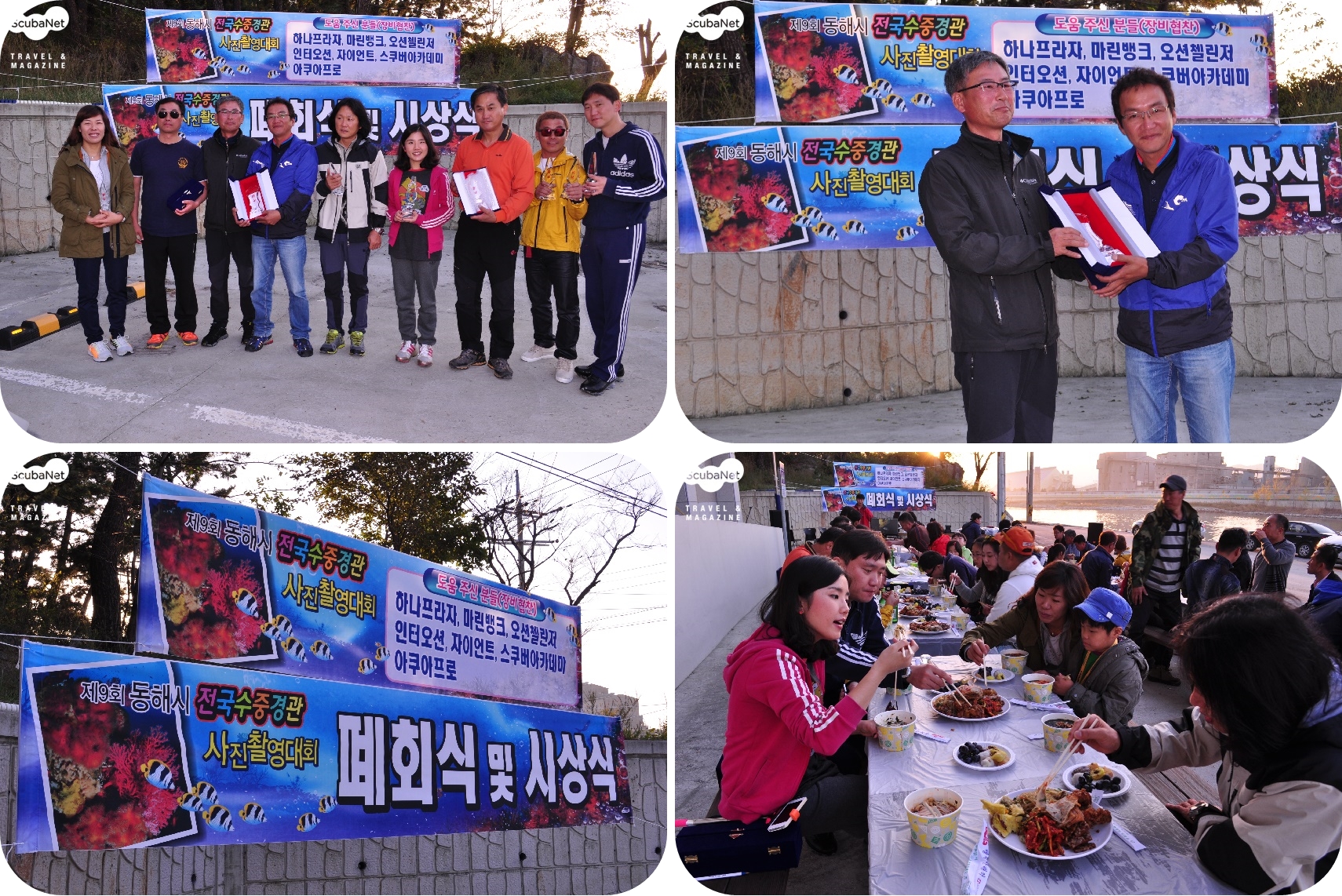 지난 9월 26일~10월 18일까지 진행되었던 제9회 동해시 전국수중경관 사진촬영대회가 10월 25일 시상식을 끝으로 행사가 성황리에 막을 내렸다. 애초에 10월 5일까지 진행하기로 계획되어 있었지만 계속되는 태풍과 풍랑주의보 등으로 행사가 연장되었다. 그리고 18일까지 제출된 작품들을 가지고, 지난 10월 22일 서울 성내동의 한국수중사진학교 사무실에서 진행되어 수상작이 결정되었다. 시상식은 10월 25일 오후 4시 강원도 동해시의 동해해양레저센터에서 개최되었다. 수상자들과 가족 그리고 관련 인사들이 참석한 가운데 현장에서 상금과 트로피, 경품 등이 제공되어 시상식 참가자들을 기쁘게 해주었다. 시상식 이모저모와 수상작들을 소개한다.