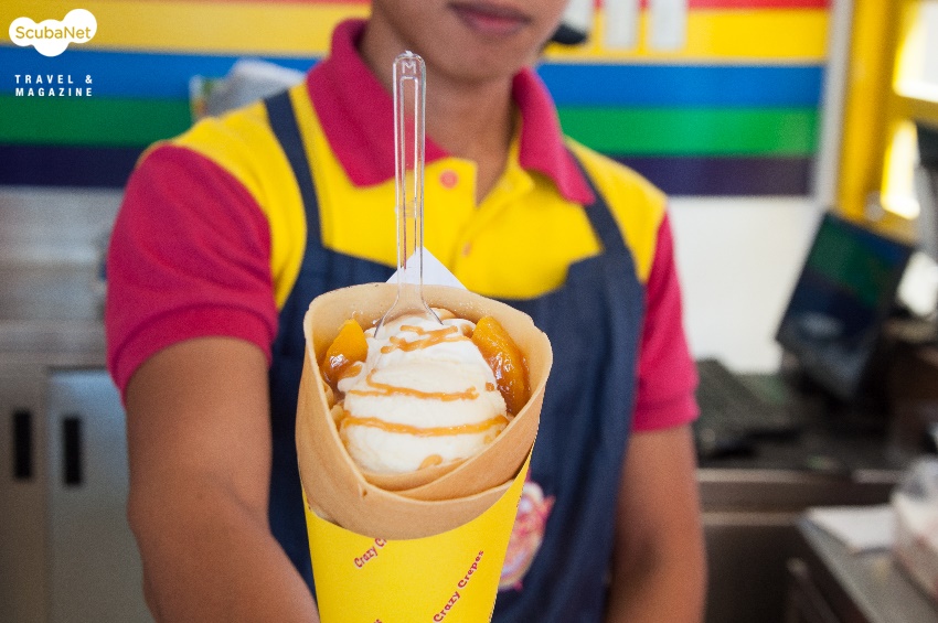 전망 좋은 아쭈로크레이지 크레페 Crazy Crepes디몰에서 스테이션 1 방향으로 하나, 디몰 안에 하나가 있다. 노란 간판에 다양한 종류의 먹음직스러운 크레페 모형이 눈길을 사로잡는다. 달달한 것을 좋아하는 여자들이라면 절대 그냥 지나칠 수 없는 비쥬얼이다. 망고, 바나나, 아이스크림, 생크림, 누텔라 등이 토핑으로 들어가는데 주문을 하면 바로 얇게 반죽을 굽고 토핑을 얹어서 만든다. 들고 다니면서 가볍게 즐기기 좋다. (물론 칼로리는 절대 가볍지 않을 듯 하다!)