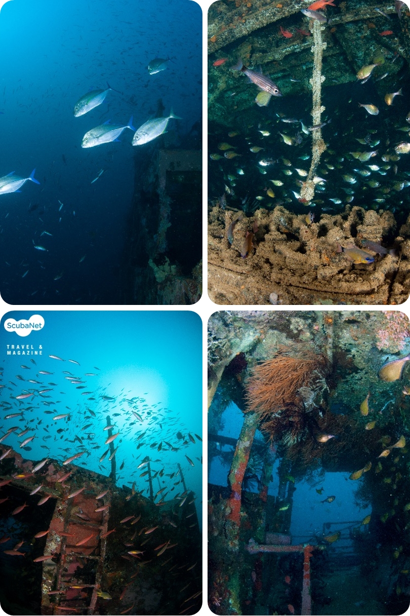 카미아 난파선 Camia Wreck2001년에 화물선을 빠트려 만든 난파선 포인트로 27~29m 수심의 모래 바닥에 놓여 있다. 바른 자세로 가라앉은 난파선에는 거대한 두 개의 스크류가 그대로 남아 있다. 난파선 내부로 들어가 엔진룸과 브릿지를 구경할 수 있는데 난파선 내부는 주걱치, 카디널 피시가 가득 들어있어 말 그대로 물 반 고기 반의 풍경이다.