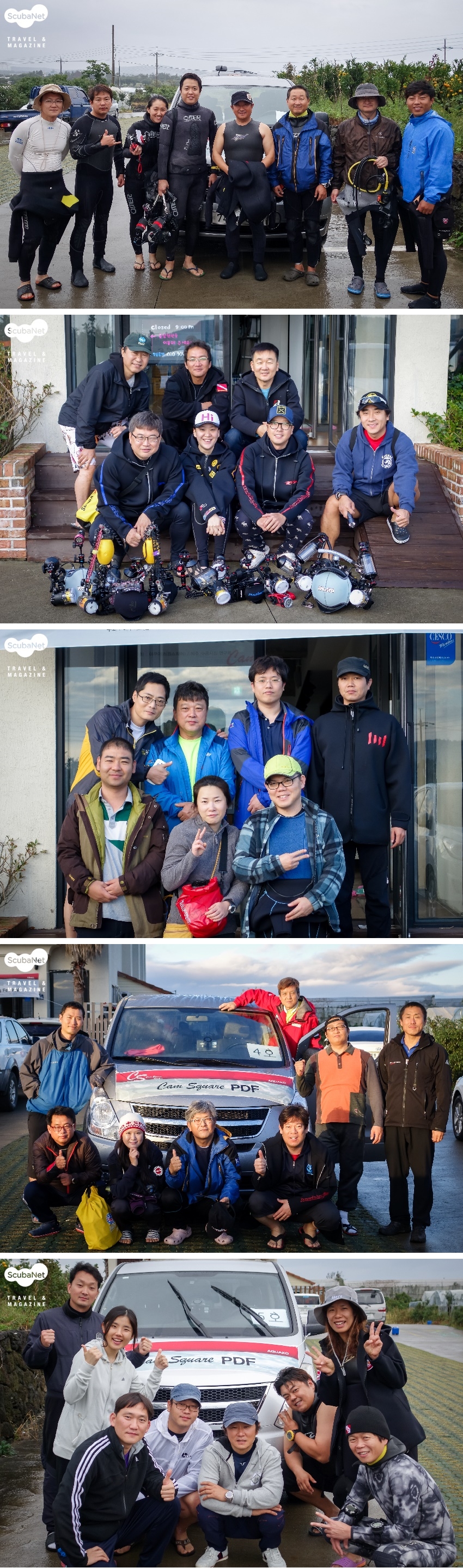 더욱더 큰 스케일로 진행된 이번 PDF는 목표와 원칙을 가진 축제일단 이번 행사와 PDF의 특성부터 간단히 소개하겠다. 서귀포시에 위치한 오션트리 리조트(대표: 양충홍)를 베이스로 두고 제주 수중사진 연구회(회장: 양승철)의 바다 가이딩을 받으며 제주 곳곳 여러 유명 수중촬영 포인트에서 조별로 나눠서 촬영할 수 있게 계획됐다. 금능(금능마린게스트하우스), 서귀포(스쿠버라이프), 성산(블루버블)과 법환(오션트리)을 출발지로 다이빙이 진행됐고, 참석을 약속한 화순(아쿠아스쿠버)에서는 아쉽게도 갑작스러운 배 문제로 인해 이번에는 다이빙 할 수가 없었다. 총 32명의 참가자가 다섯 조로 나눠서 무작위로 매칭된 유명한 멘토 다섯 분과 같이 대회 내내 수중과 지상에서 사진에 대해 많은 도움을 받았고 수중촬영의 경험이 많은 제주 수중사진 연구회의 회원들과 현지 숍의 강사들이 직접 가이딩과 안전을 담당하였다.