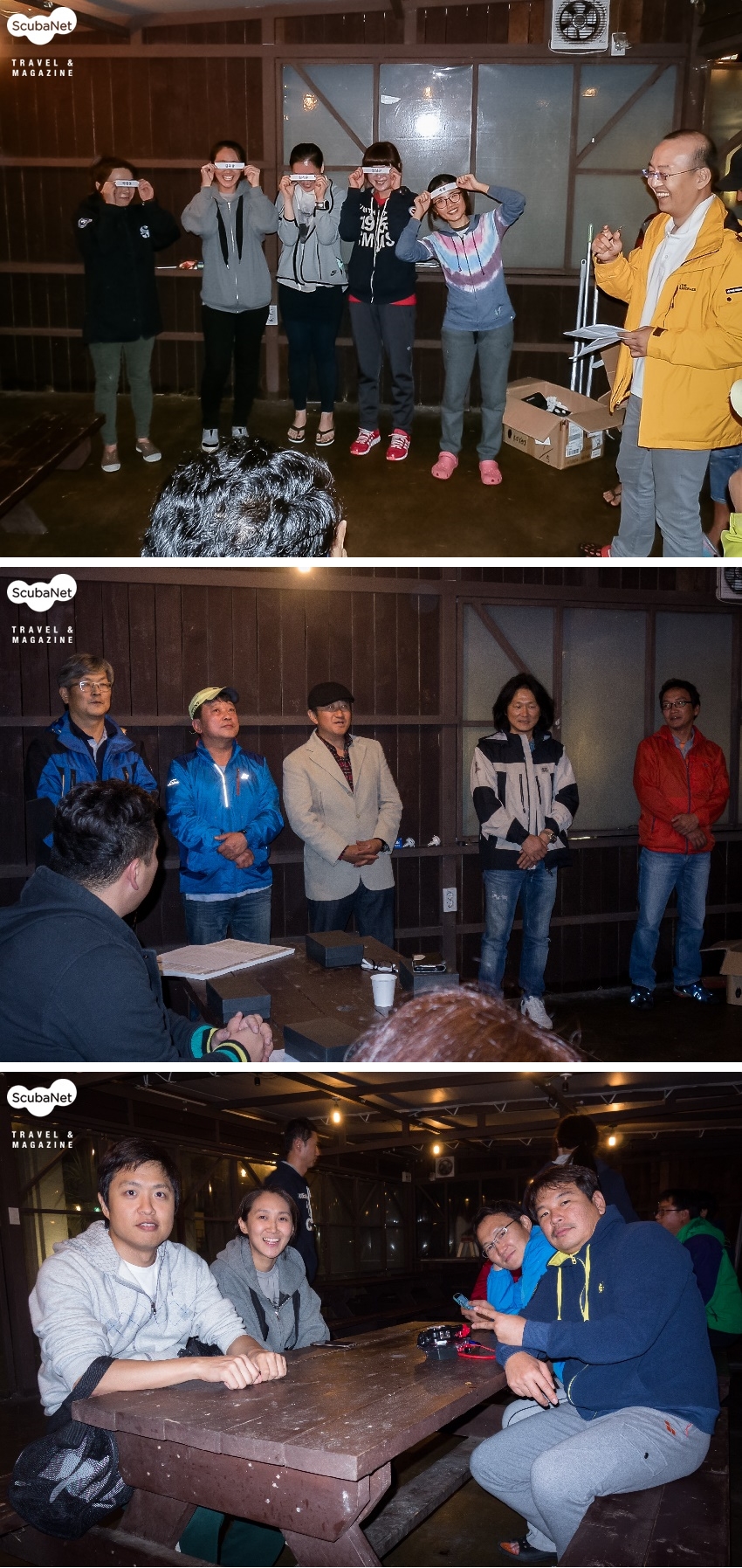 10월 30일 : 조원들과 멘토의 만남목요일 오후서부터 전국 곳곳에서 많은 수중사진가가 제주로 향했다. 제주공항에서 준비된 렌터카로 오션트리에 도착한 참석자들은 늦은 시간에도 불구하고 함께 한자리에 모여서 오리엔테이션을 가졌다. 사전에 짜진 다섯 조의 조원들이 먼저 모여 서로 인사를 나누고, 함께 주최측의 행사 내용 설명과 멘토들과 제주 수중사진 연구회 회원들의 소개를 받았다. 그 후 조장들이 앞으로 나와서 제비뽑기로 선택한 다섯 명의 멘토들과 매칭되었다. 공정성을 위해 다음 이틀간 진행되는 여러 촬영지도 역시 같은 방식으로 랜덤하게 정해졌다. 또 한 행사기간에도 유효하게 사용할 수 있었던 다이빙랜턴과 Cam Square Underwater Photographer가 새겨진 여권케이스가 모든 참가자에게 참가상품으로 나누어졌다. 오리엔테이션이 마치고 각 조원과 멘토들이 조별 시간을 가졌는데 늦은 시간인데도 불구하고 멘토들의 열정은 대단했다. 다음날 다이빙에 조금이라도 도움이 될 수 있게, 하나라도 더 보여주고 가르쳐 주려고 하는 멘토들의 노력이 새벽까지 이어 졌고 이 점이 필자에게는 참 인상적이었다.