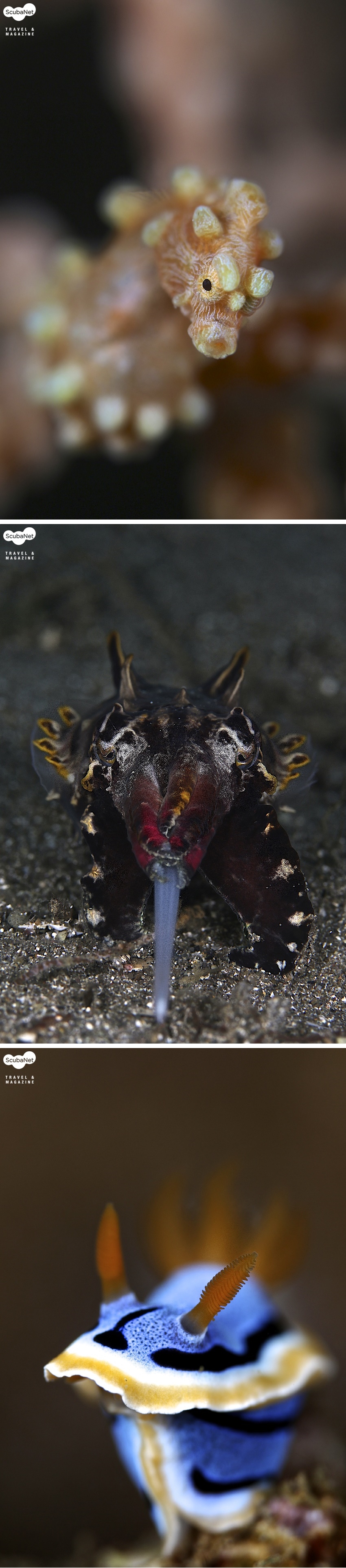 스쿠버다이빙 잡지사 기자라는 신분으로 평소 수중사진을 자주 찍는 편이지만 마크로 사진을 촬영할 기회는 많지 않다. 주로 취재용 광각 사진을 찍고 마크로 사진은 야간 다이빙이나 특별히 마크로로 유명한 포인트에서 간혹 찍을 뿐이었다. 이번 3일의 시간이 개인적으로는 마크로 사진에 가장 열중했던 시간이었다. 작은 피사체를 찾아내는 것, 그리고 원하는 구도와 배경을 잡고 그 작은 피사체에 초점을 맞춰 사진을 찍는 것. 하나하나가 어려운 과정이었고 마음에 드는 사진을 찍기란 더더욱 어려웠지만 물 속 세상을 조금 더 집중해서 볼 수 있는 시간이었다. 작고 귀여운 생명체를 찾고 오랜 시간을 그들 곁에서 지켜보며 천천히 사진을 찍었다. 그리고 너무 작고 여려 보였던 피사체들이 사실은 강인한 생명력으로 각자의 삶을 살고 있음을 느낄 수 있었다. 처음으로 마크로 사진이 갖는 매력을 흠뻑 느껴본 시간이었다.