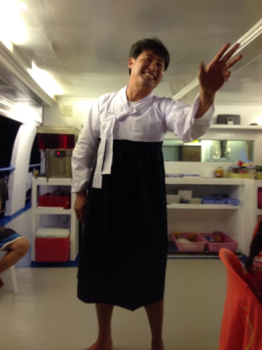리브어보드의 장점이자 단점은 하루의 다이빙 일정이 끝난 후 밤이 되면 모두 배 안에 남아 있어야 한다는 것이다. 떠나기 전 리버보드 유경험자들에게 여행 후 느낌을 물어본 바로는 호불호가 확연이 갈렸다. 특히 같이 생활하는 사람들이 서로 어색하고 불편하면 정말 답답한 곳이 배 안일 것이다. 그러나 이번 여행에서 가장 좋았던 것은 다이빙 팀원들이었던 것 같다. 특히 이번 모임에 가장 연장자이셨던 (내가 두 번째) 예민수 강사님은 거의 조카뻘 되는 팀원들에게 먼저 다가가 스스럼 없이 친구처럼 지내시고, 때로 이제 다이빙을 막 시작한 친구들이 힘들어 할 때는 든든한 다이빙 선배로 이끌어 주시면서 전체 분위기가 허물없고 즐거워지는데 많은 역할을 하셨다. 서로 다른 업종, 다른 장소에 살면서 다이빙이라는 하나의 공통점만으로 모인 사람들이 같이 모여 떠들고 즐길 수 있다는 것은 다이빙의 가장 큰 매력 중의 하나일 것이다. 나중에는 보트 천장 위 쏟아지는 별과 유성 아래서 지금 생각하면 손발이 오글거리는 옛 사랑이야기까지 이들과 나눴으니 참 15년 넘게 안 해 본 경험이었다.