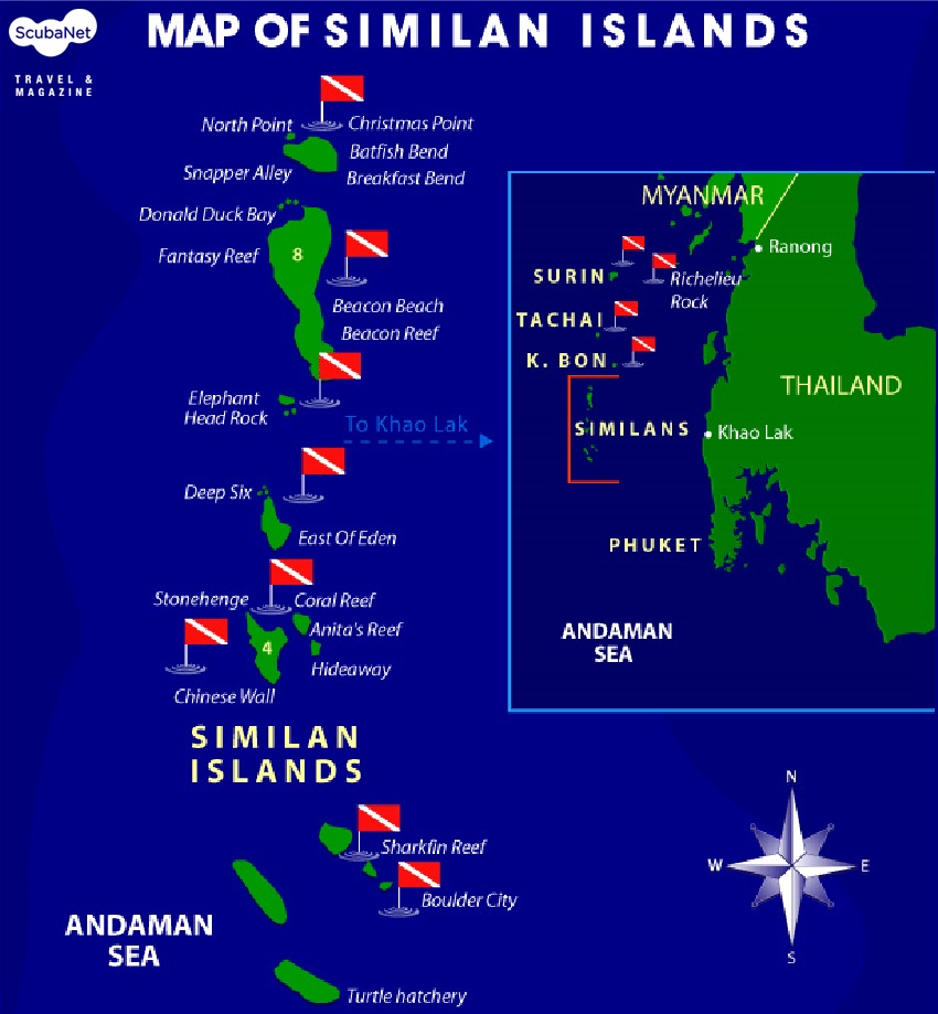 먼저 시밀란 다이빙에 대해 간단한 소개를 하자면 시밀란 군도(타이어: เกาะสิมิลัน, Similan Islands)는 타이 남부 안다만 해에 있는 섬 무리이다. 팡응아 주에 속하고 1982년에 국립공원으로 지정되었다. 시밀란 군도 국립공원은 꼬 본(Koh Bangu), 꼬 시밀란(Koh Similan), 꼬 빠유(Koh Payu), 연결된 섬 꼬 미앙(Koh Miang Koh Hok, Koh Ha), 꼬 빠얀(Koh Payan), 꼬 빠양(Koh Payang), 꼬 후용(Koh Huyong)의 9개의 섬으로 이루어져 있다. 최근에 공원은 확장되어 두 개의 외딴 섬 꼬 본(Koh Bon)과 꼬 따차이(Koh Tachai)를 포함하게 되었다. 시밀란 군도는 팡응아로부터 70km 떨어진 곳에 위치한다. 시밀란은 야위어로 '9'를 의미한다. 시밀란 리버보드는 이들 섬을 숙식이 가능한 보트로