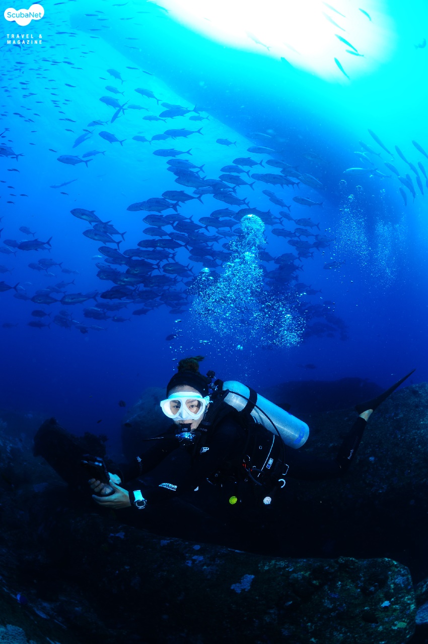 한 이틀 지나가는 여성 다이버를 불러 잡아 사진을 찍어 주고 일정이 끝난 저녁에 보여 줬더니 다들 좋아했다. 짧은 경력으로 모델도 없이 사진을 찍다 모델이 생기니 사진이 더 풍부해지고 더 재미가 있었다. 비록 수중사진 전문 모델들의 위치와 포즈는 아니지만 다이빙을 즐기는 그들의 모습이 사진에 생생히 묻어나니 사진에 이야기가 입혀지는 것 같다. 암튼 나의 무작위 길거리 아니 수중 캐스팅에 응해 주신 모델 다이버님들께 이 글을 빌어 감사드린다.