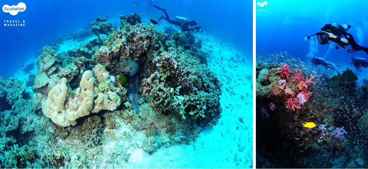 엘리펀트락의 거대한 곰치와  연산호와 글라스피쉬를 촬영중인 조선형 강사
