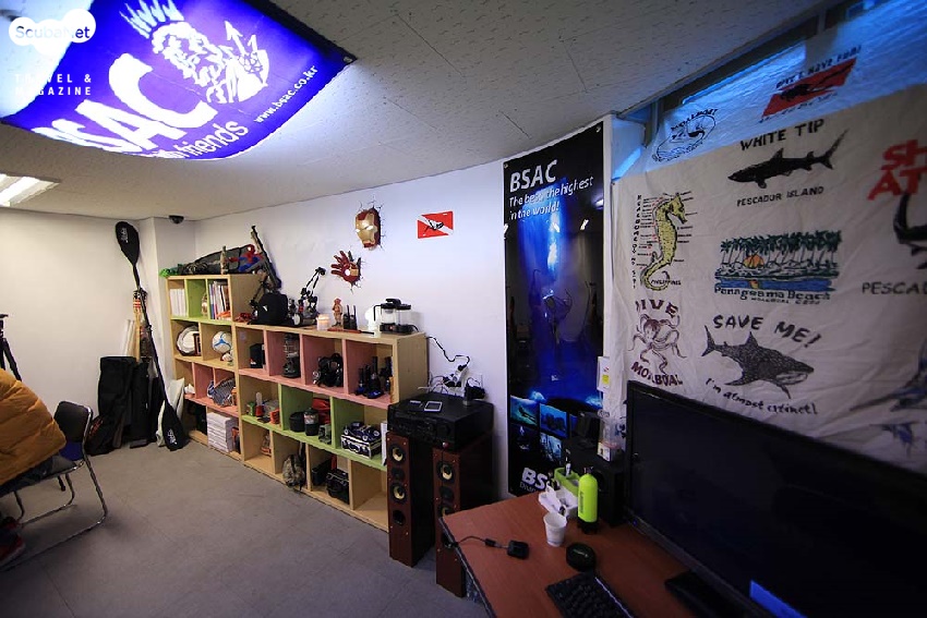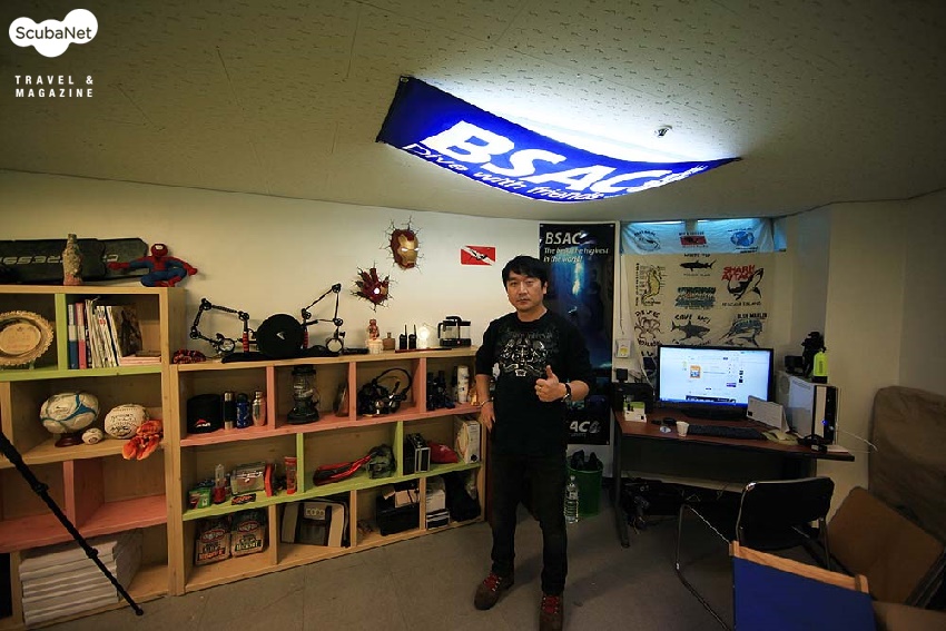 코바 다이빙 스쿨은 들어가는 순간, 여기가 다이빙 숍이 맞는지, 잘못 들어온 것은 아닌지 헷갈린다. 수중 촬영 장비와 BSAC 깃발이 보이긴 하지만 그보다 먼저 아이언 맨 마스크와 스파이더맨 피규어 같은 각종 장난감이 눈에 들어오기 때문이다. 캠핑용 랜턴, 노, 축구공, 여러 피규어와 장난감! 다이빙 숍이라기 보다 다양한 취미를 가진 성인 남자의 놀이공간 같은 느낌이다. 이 공간의 주인은 바로 BSAC 김윤석 트레이너이다. 그가 좋아하는 물건들로 가득 채워져 있는 코바 다이빙 스쿨에서는 다이빙에 대한 얘기에 앞서 곳곳에 놓인 물건들을 구경하기에 정신이 없어진다. 독특한 공간만큼 독특한 이력을 가진 김윤석 트레이너를 만나보자.