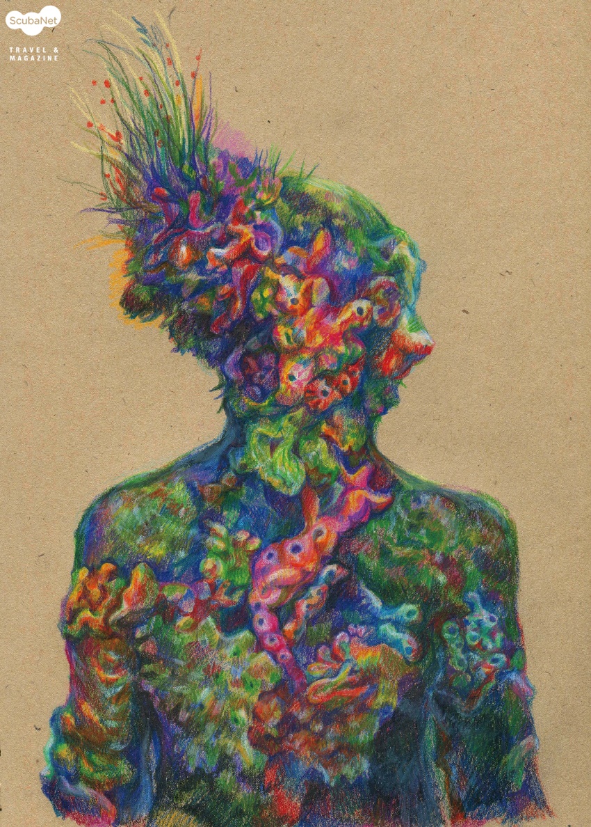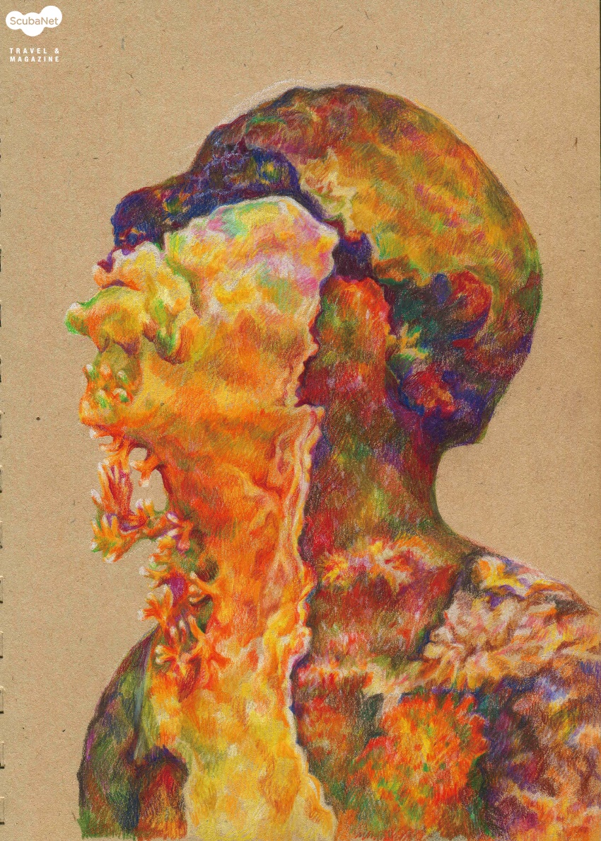 칸쿤 수중박물관 일러스트레이션 작업 이후 나는 바다에 대한 되새김의 작업에 계속 빠지게 되었다. 바다 속 생명들, 그 중에서도 특히 산호들을 그리는 과정에서 그 속에 내재된 아름다움과 기괴함을 발견하게 되었다. 산호는 인간이 생겨나기 이전부터 바다를 구성하던 생명체이어서 태초 생명의 형상들을 간직하고 있다. 그래서 인간 또한 산호와 닮을 수밖에 없다.