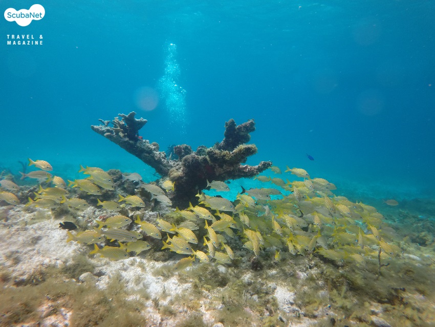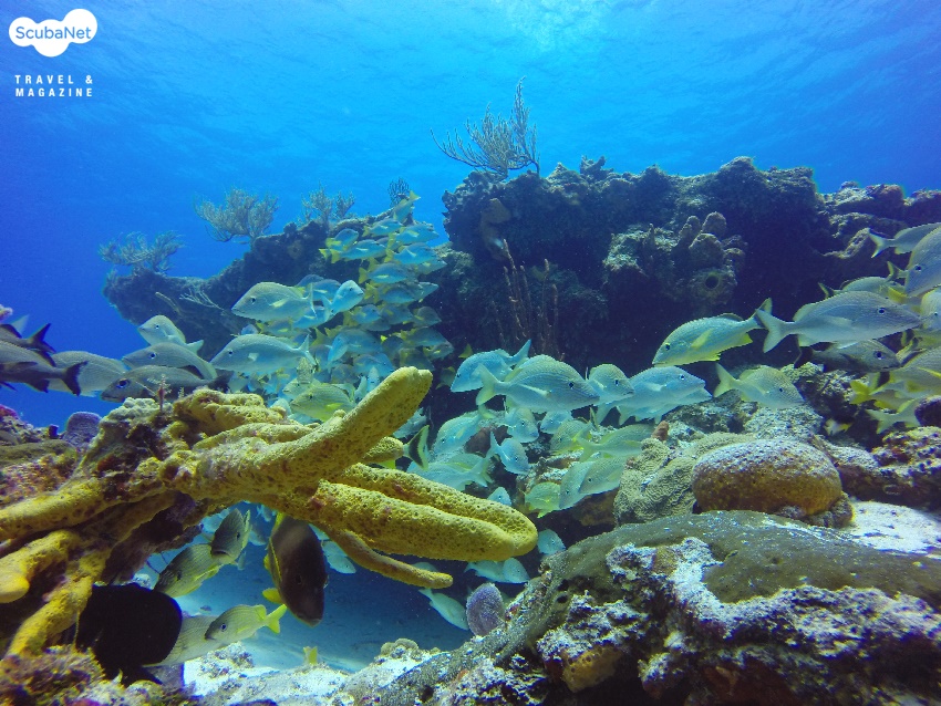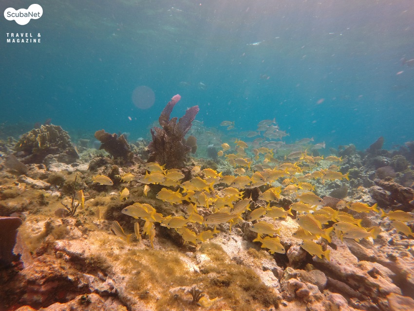 덩치가 큰 녀석들일수록 다이버들을 겁내지 않고 사진을 찍기 위해 거리를 좁혀도 잘 도망가지 않았다. 덕분에 한국이나 태평양 바다에서 보기 힘든 대형 엔젤피쉬(Grey angel fish)들을 신나게 카메라에 담을 수 있었고, 통통한 스내퍼(Sapper)들이 산호를 끼고 무리 지어 있는 장면들도 비교적 손쉽게 담을 수 있었다. 사진들을 감상해 보시길. 첫날부터 멋진 장면들을 보면서 깨끗한 물 속에서 다이빙을 할 수 있는 기회를 가지게 되었으니 한마디로 포식한 셈이었는데 앞으로 과식할 생각을 하니 하루하루가 기대되는 멕시코의 바다이다