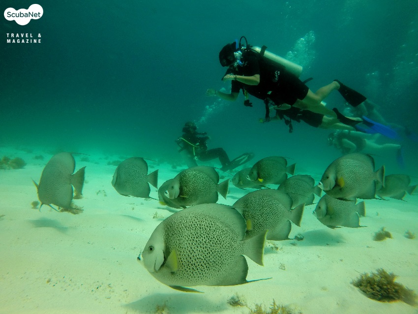 그레이 엔젤 피쉬와 다이버