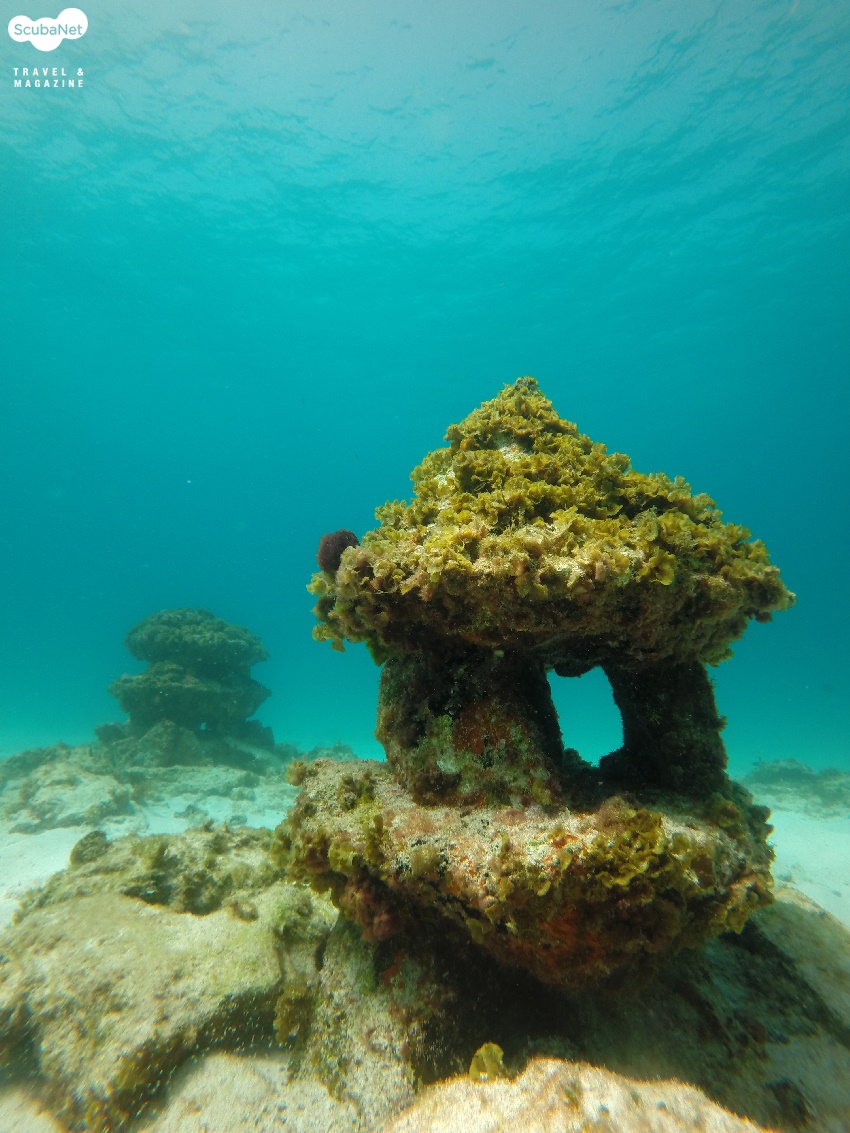 과거 칸쿤과 그 주변 해역을 강타한 강력한 태풍 탓에 이곳 산호초 일대가 많이 훼손이 되었었다. 그 까닭으로 훼손된 해역의 건강성을 복원하고자 2008년부터 2013년까지 500여점의 조각상들과 건축물들을 연안해역에 설치하였는데, 이것이 바로 수중박물관인 것이다. 단순한 인공어초가 아닌 예술작품들을 해양생물들의 서식처로 제공함으로써 칸쿤 수중박물관 일대는, 해양환경과 인간의 예술활동을 조화롭게 공존하는 곳으로 알려져 있다. 덕분에 ‘죽기 전에 꼭 가보아야 할 곳 TOP 10’ 에 항상 꼽히는 곳이고, 필자의 목록에도 수중박물관은 TOP3 안에 들었던 다이빙 포인트이다. 다시 말해 필자가 멕시코 다이빙을 결심하게 된 가장 큰 이유가 바로 이곳에 있다!