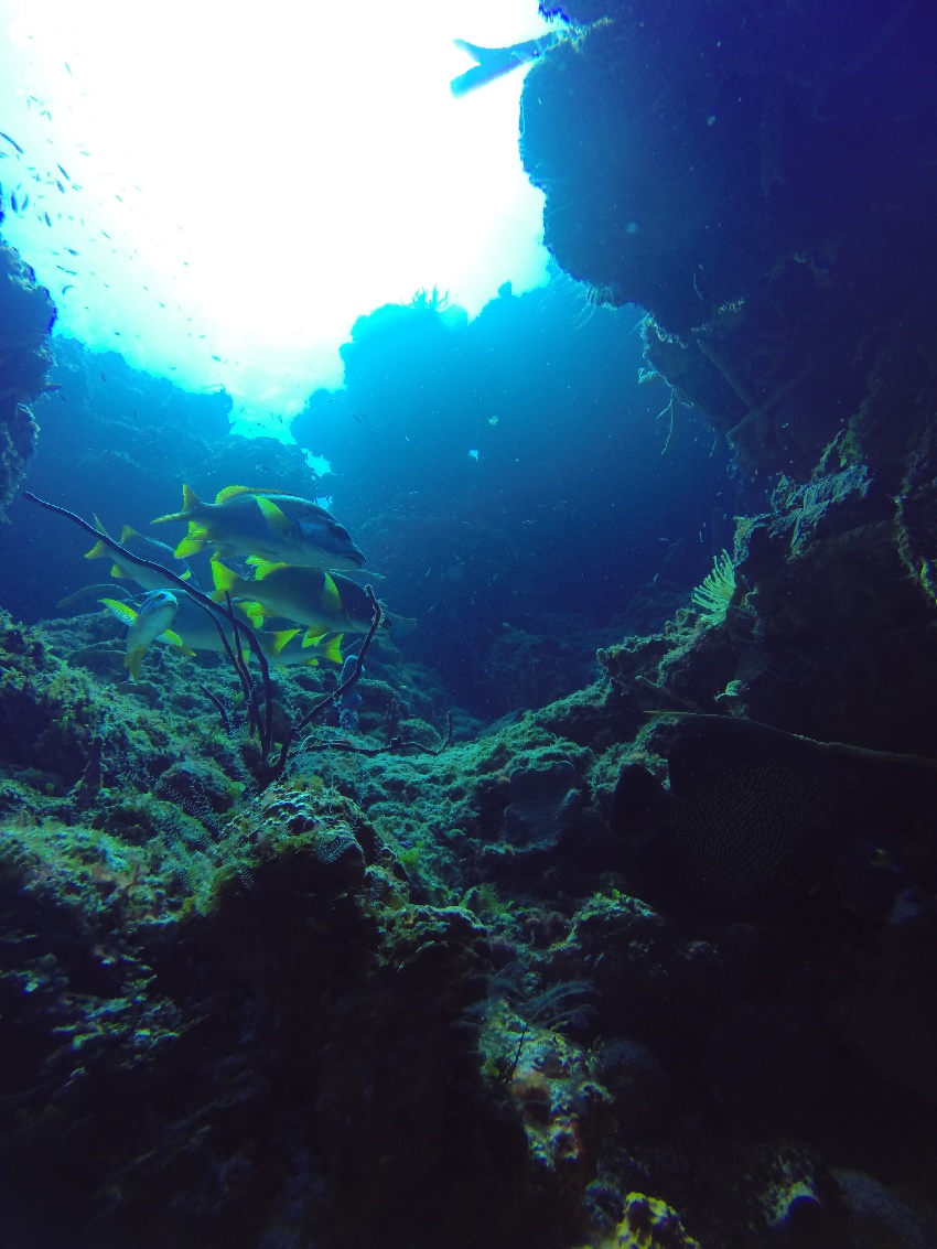 코주멜에서의 다이빙은 절벽 사면을 끼고 조류를 타고 흘러가면서 즐기면 되는 다이빙이었다. 산타 로사(Santa Rosa)라는 포인트였는데, 우선 빼어난 수중시야 덕에 사방이 드라마틱한 경관을 자랑하고 있었다. 그리고 협곡 사이사이에 물고기 떼들이 모여 한가로이 유영을 하고 있으니 바다 속 사파리가 바로 이곳이었다. 절벽 중간중간에는 아치형으로 뚫린 구멍들이 여러 곳에 위치해 있었는데 장애물을 넘듯이 이 작은 굴들을 빠져나가는 재미도 쏠쏠하였다. 웅장한 경관도 인상 깊었지만 가장 기억에 남는 것은 물고기들이 모두 친근하다는 점이다. 무슨 말인가 하면 주로 한국 바다에서나 가까운 필리핀 바다에서 다이빙을 하면 물고기들이 다이버를 보면 피하는 경향이 있다. 그러나 이곳에서는 물고기들이 다이버들을 무서워하지 않을뿐더러, 오히려 가까이 와서 다이버들을 구경하는 녀석들도 있었는데 평소 해양생물들을 자극하지 않고 잘 보존해온 노력의 결과인 듯 했다.