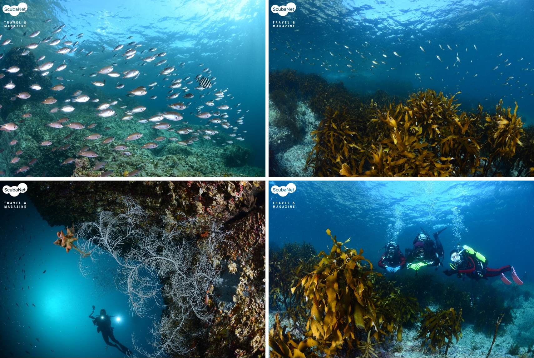 이곳도 관음도 방향의 얕은 수심대에서는 감태와 대황숲이 무성했고, 전갱이, 자리돔, 흰오징어 등을 구경할 수 있었다.