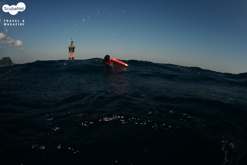 관음도 솔밭포인트갑자기 몰아치는 바람으로 인해 쌍정초의 파도가 3m 정도로 높아지면서 1회 다이빙으로 마치고 급하게 바람을 피해 이동한 곳이 관음도의 솔밭포인트였다. 관음도가 보이는 본섬 쪽에서 입수하여 관음도와 본섬 사이에서 진행하는 다이빙이었다.