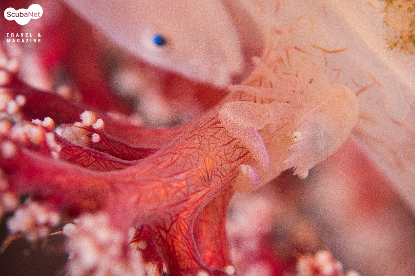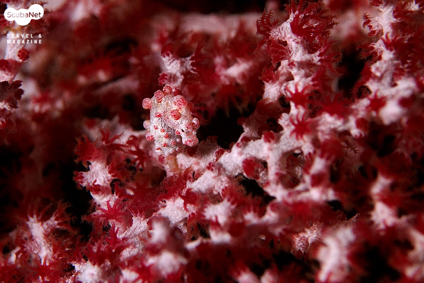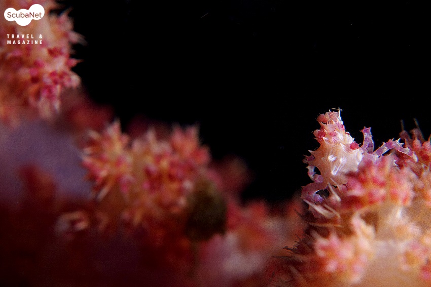 피그미해마의 서식환경을 최대한 살리기 위하여, 산호의 폴립이 피어있는 상태로 배경 구도를 잡았다. Anilao,