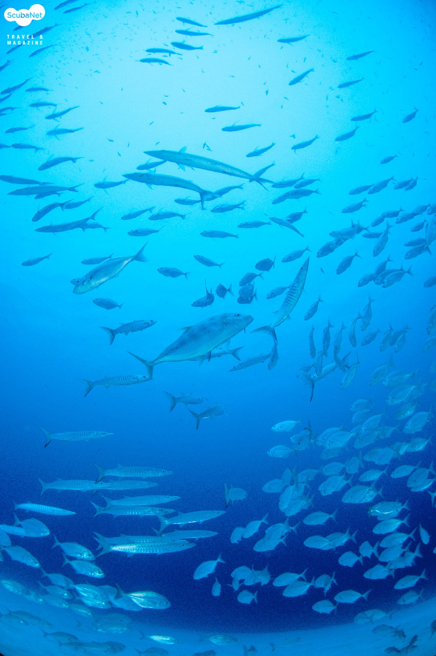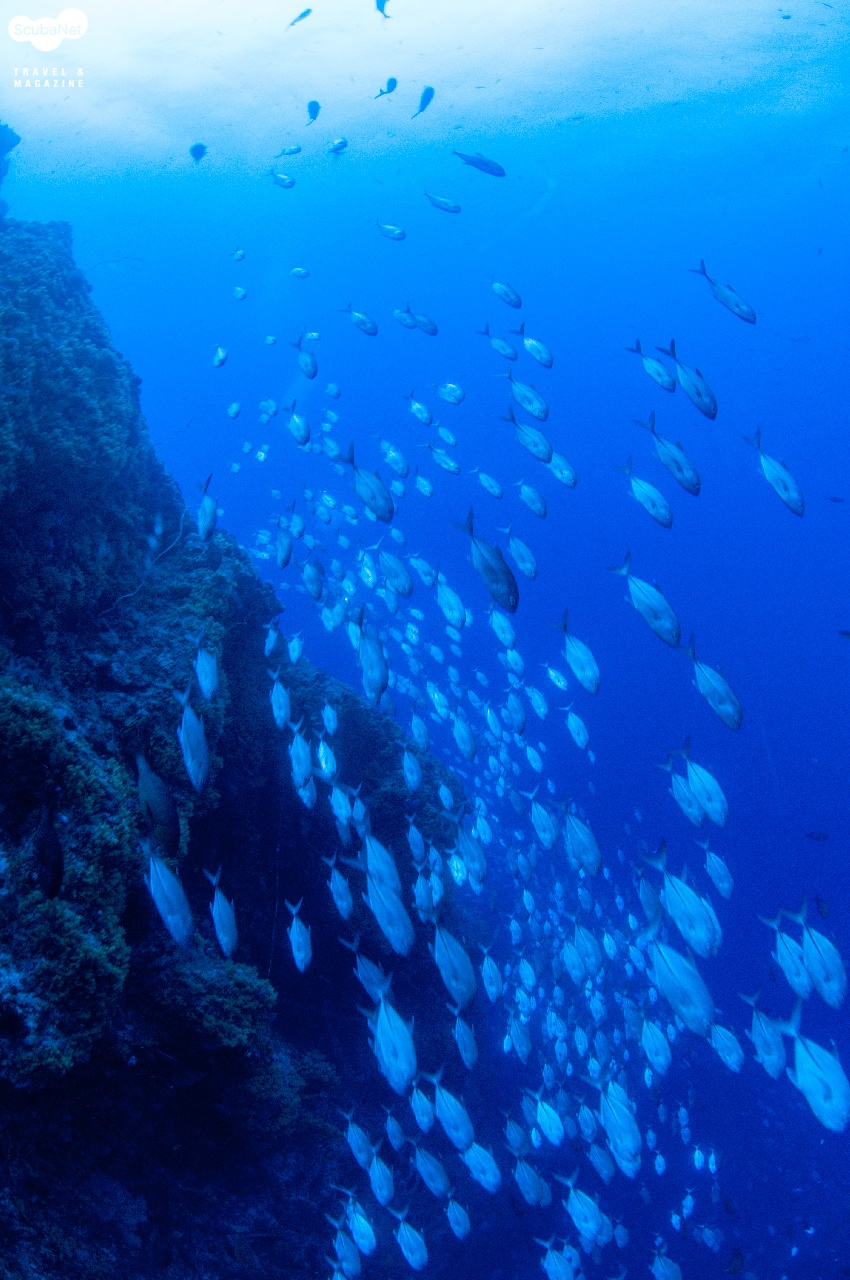 그라스 랜드 Grass Land그라스 랜드는 하얀 모래 바닥을 채운 가든일 무리 때문에 붙은 이름으로 울롱 채널 근처에 최근 개발된 포인트이다. 개인적으로는 이번 팔라우 투어를 통 털어서 가장 환상적인 다이빙이었다. 그라스 랜드에서는 수심 24m의 바닥에서부터 수면까지 모든 곳이 다양한 은빛 물고기의 향연이었다. 먼저 모래 바닥에서 커다란 무리의 빅 아이 트레발리와 바라쿠다 무리가 맞닥트렸다. 거대한 두 무리의 패싸움처럼 서로를 만나는 장면은 무척 흥미로웠는데 조금씩 서로 뒤섞이는 듯 싶더니 바라쿠다 무리가 수면으로 자리를 피했다. 자신의 자리를 지켜낸 빅 아이 트레발리의 승리라고나 할까? 이내 은빛 푸질리어의 피시볼이 갑자기 눈 앞에 나타났다.