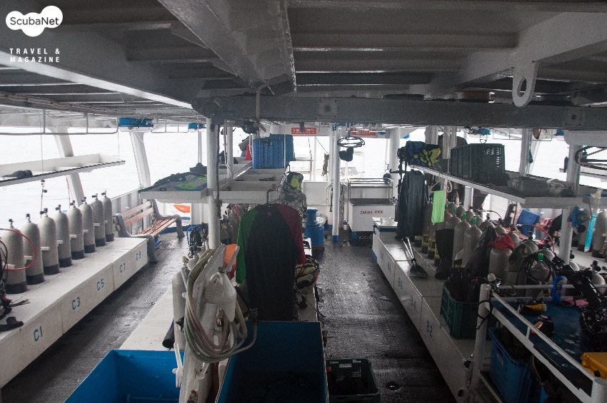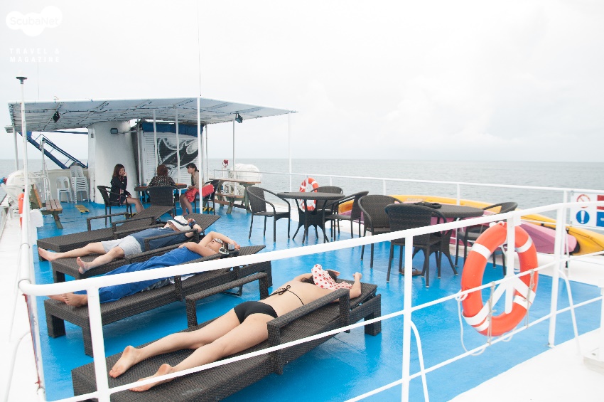 일어나서 빵 먹고 다이빙, 아침 먹고 다이빙, 점심 먹고 다이빙, 간식 먹고 다이빙, 저녁 먹고 취침! 정말 먹고 자고 다이빙이 전부인 단순하고 평온한 삶이다. 데이트립처럼 하루 왕복 2시간을 스피드 보트에서 보낼 필요가 없으니 여유롭고 다이빙 중간의 휴식 시간을 모두 편안한 선상에서 드라이한 상태로 보낼 수 있다.