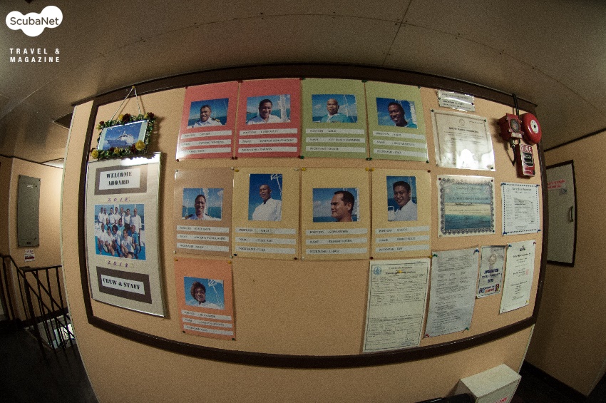선내 복도에 스태프 소개와 선박의 면허증 등이 붙어 있다.