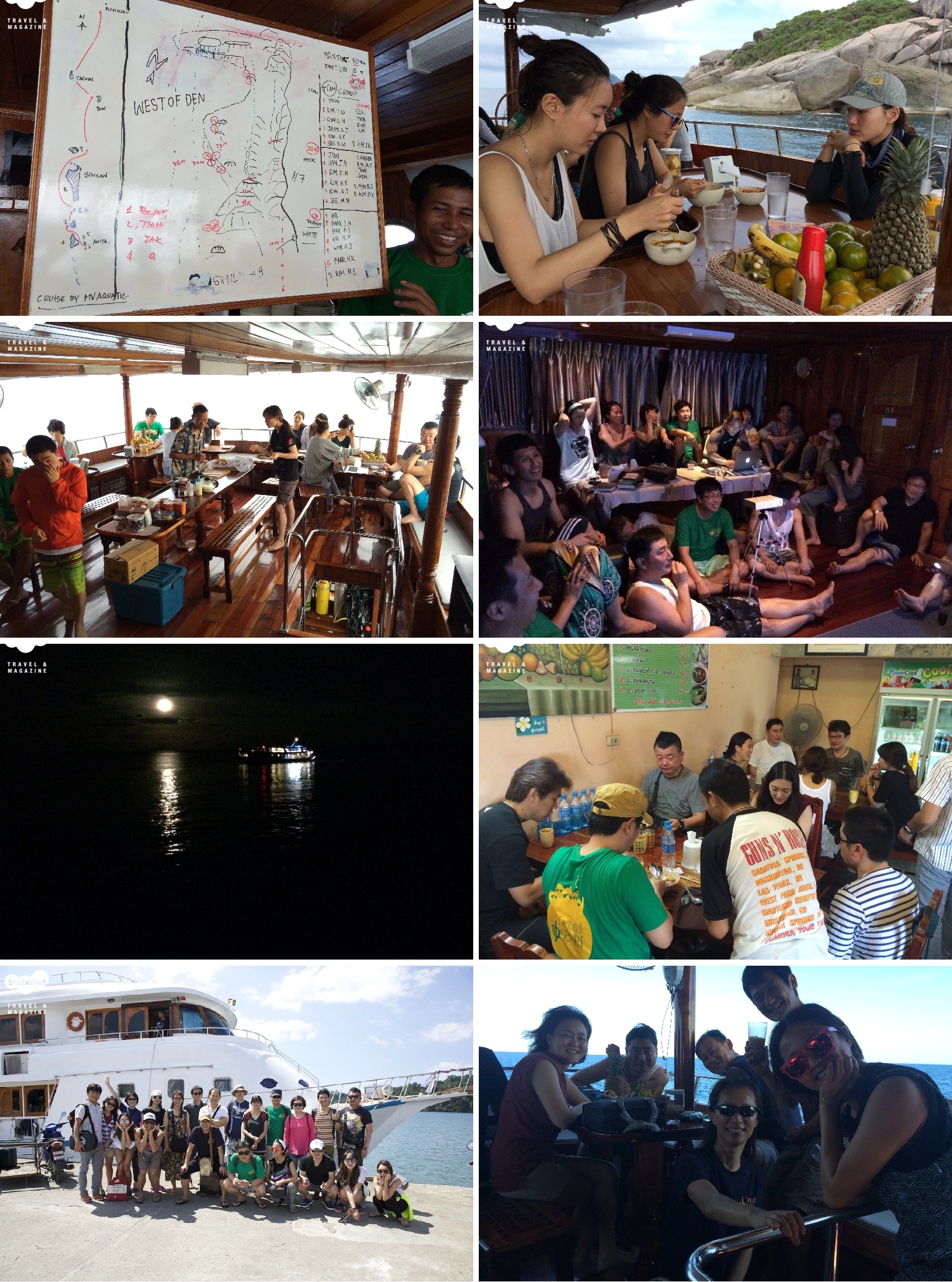 이번 투어의 현지 진행은 푸켓 스쿠버포유의 이훈재 대표(차다 강사)가 맡아서 타이항공으로 일찍 푸켓에 도착한 일행들을 위해 식사와 마사지, 이동 등을 진행해주었고, 리브어보드에 함께 탑승하여 수중 가이드를 비롯해 선상생활의 세밀한 부분까지 잘 안내해주었다. 그리고 귀국일 오후의 푸켓 식사와 스파, 마사지, 이동 등의 일정도 불편하지 않게 잘 진행해주었다.