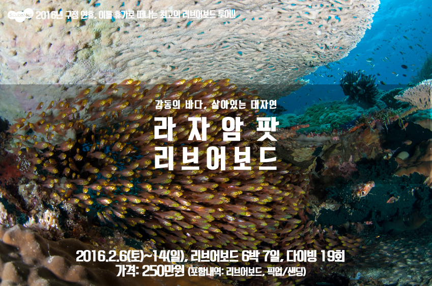 스쿠버넷에서는 2016년 구정 풀 챠터 리브어보드 투어로 라자암팟을 갑니다.