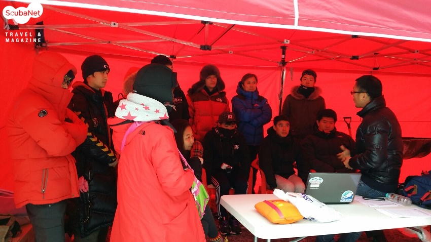 이번 행사에서도 10여 분들이 아이스 다이빙에 대한 사전 교육 및 경험이 없어서 행사를 시작하기 전 1시간 가량의 스페셜티 교육을 진행한 후 행사에 참여할 수 있었다.