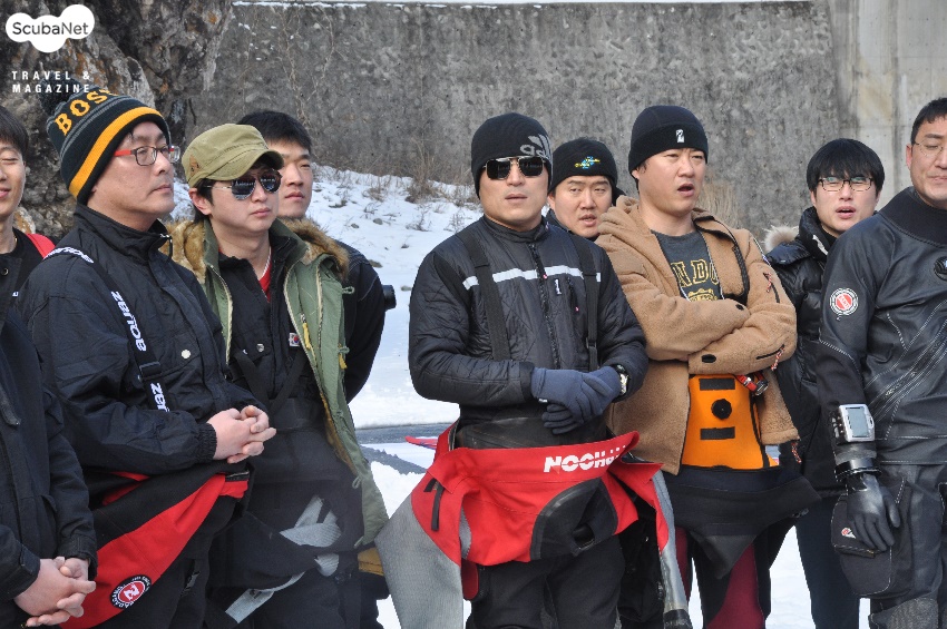 브리핑을 듣고 있는 다이버들