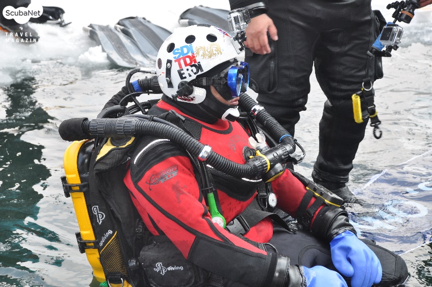 아이스다이빙을 준비중인 대만 다이버